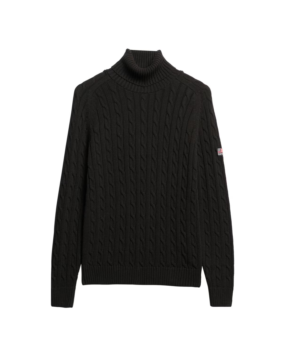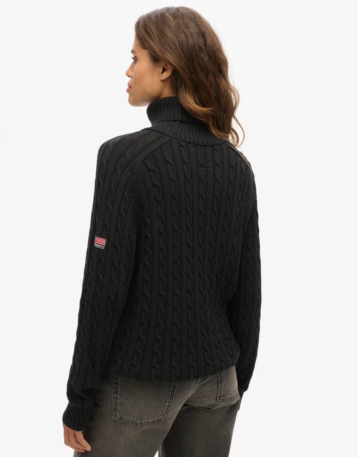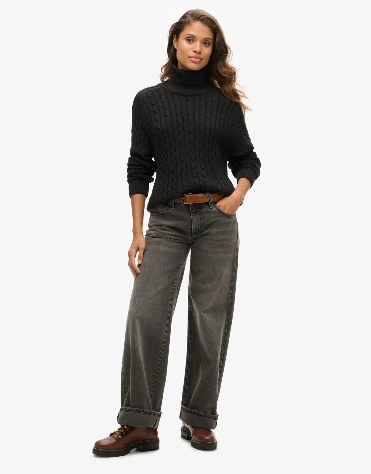 Superdry Slouchy cable roll neck jumper in dark charcoal grey