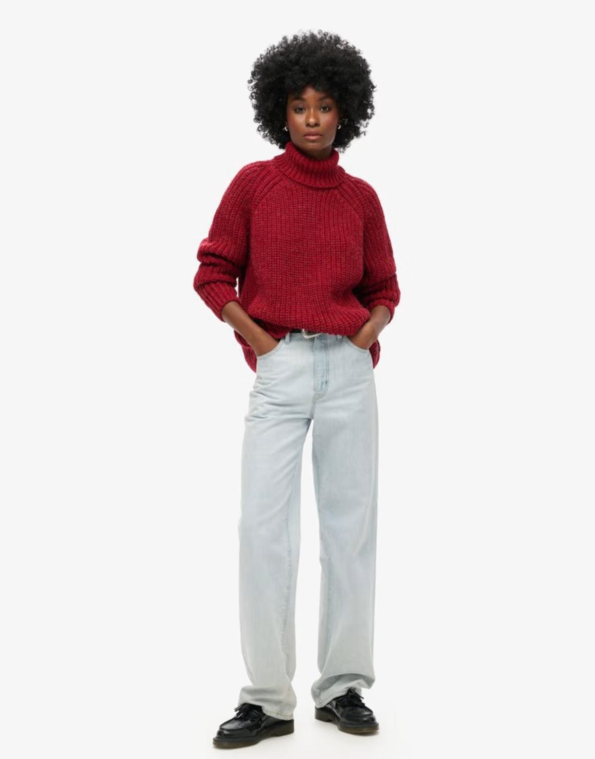 Superdry Slouchy stitch roll neck knit in rouge marl