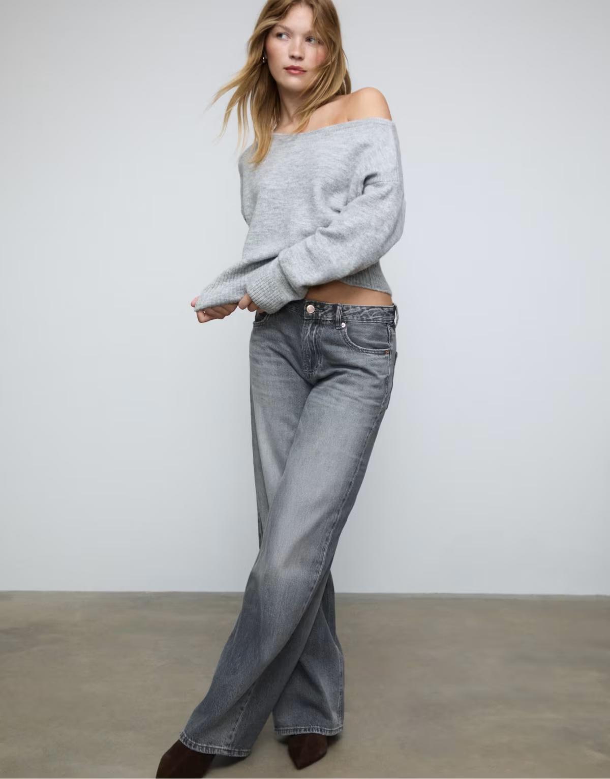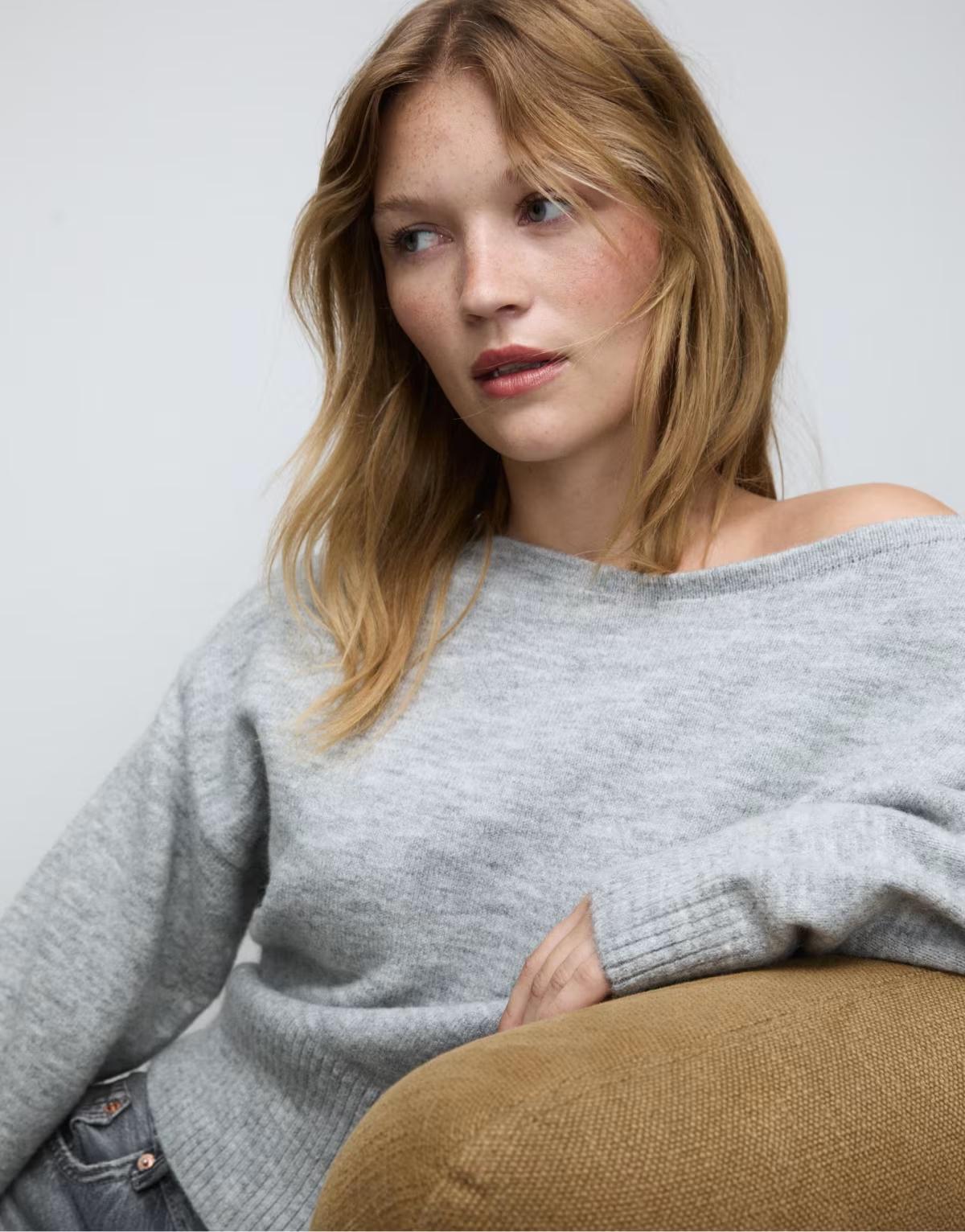 Stradivarius Soft-touch knit boat neck sweater in grey melange