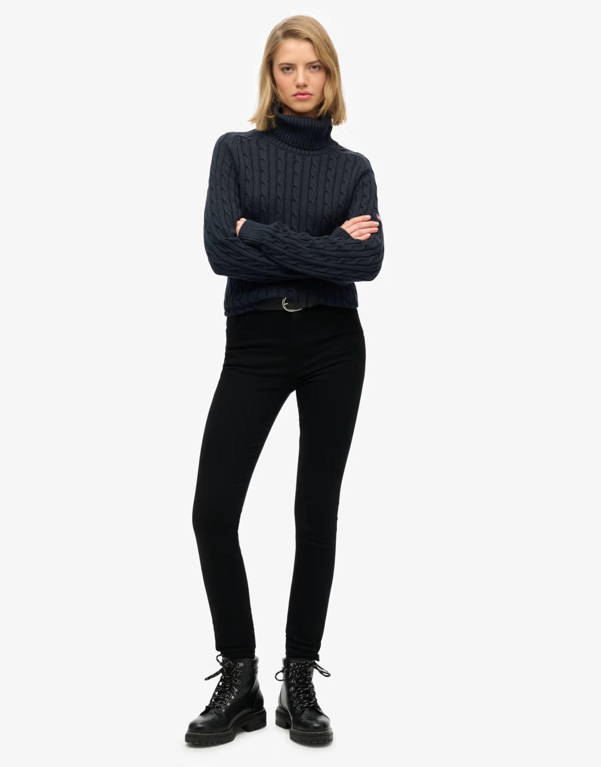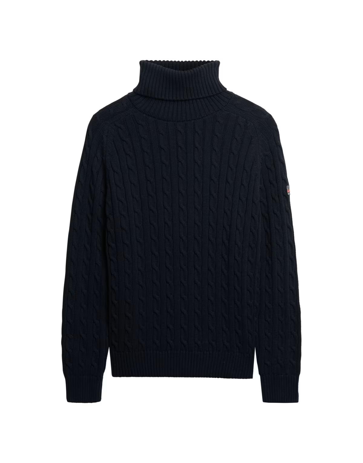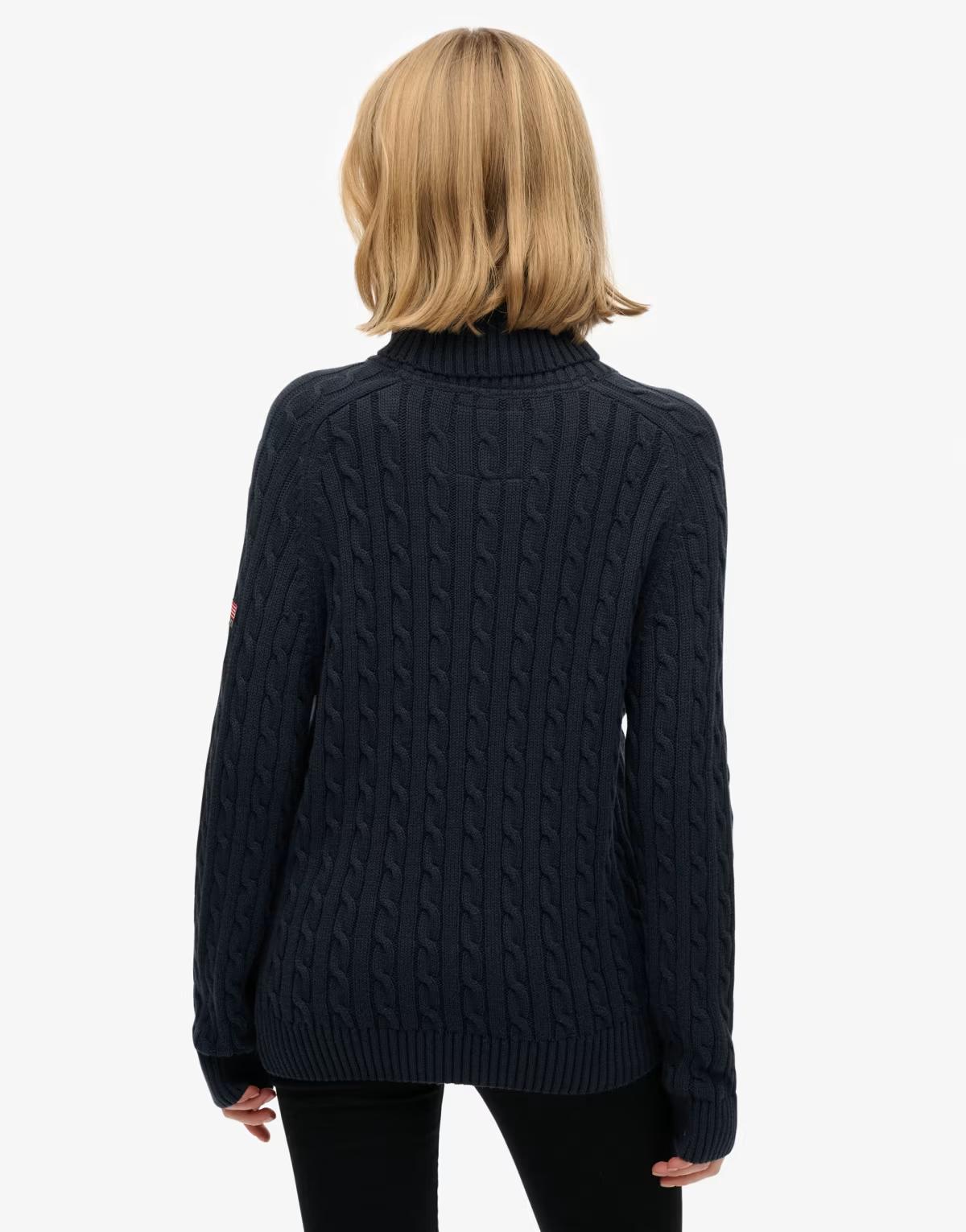 Superdry Slouchy cable roll neck jumper in deep navy