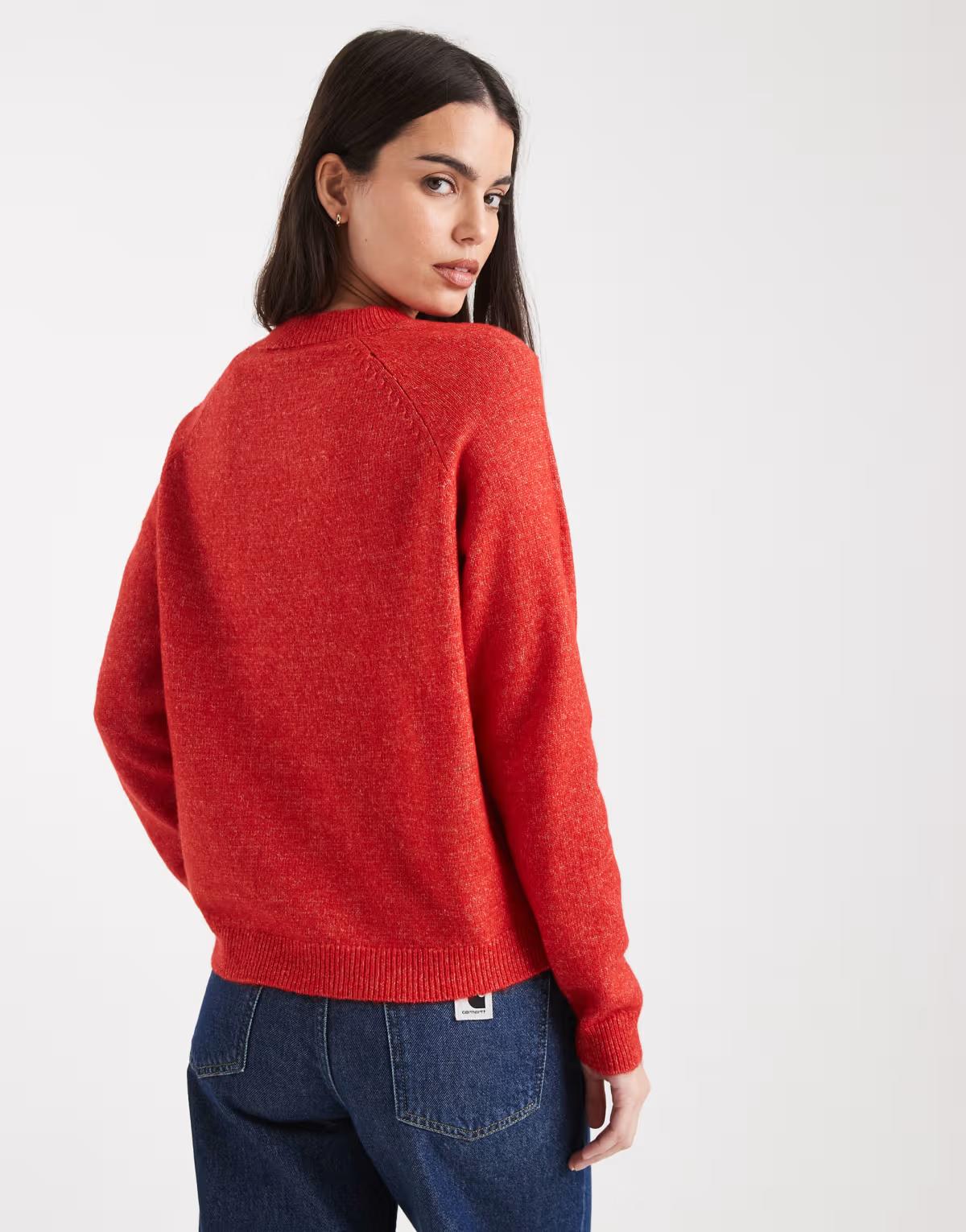 Pieces high neck jumper in red