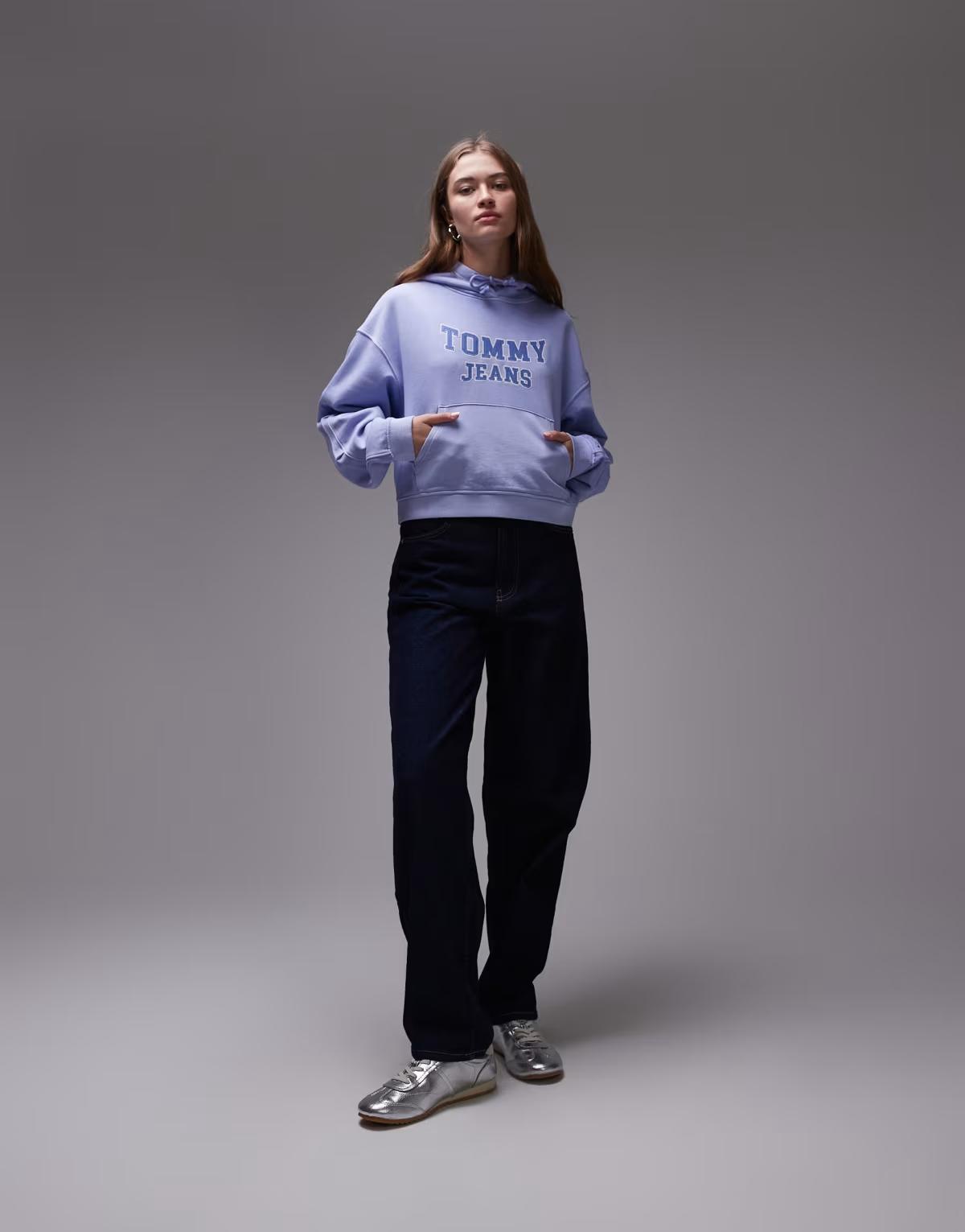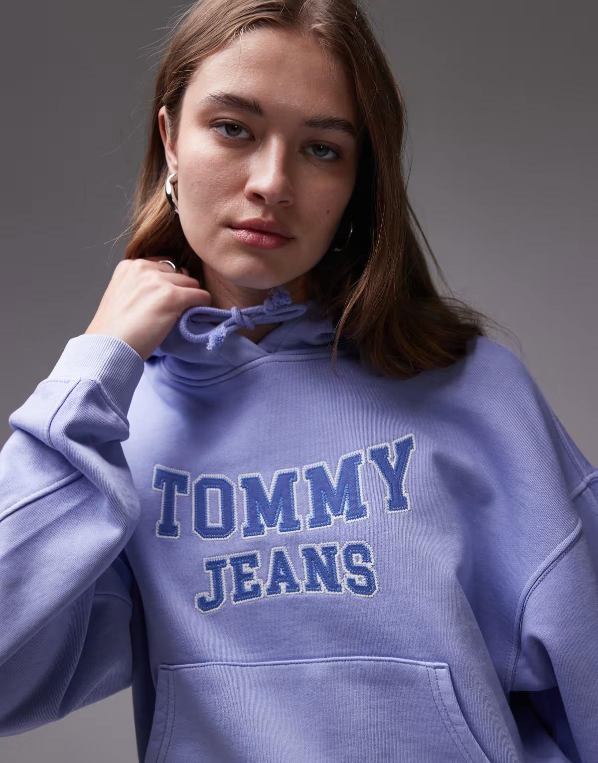 Tommy Jeans boxy varsity logo hoodie in blue