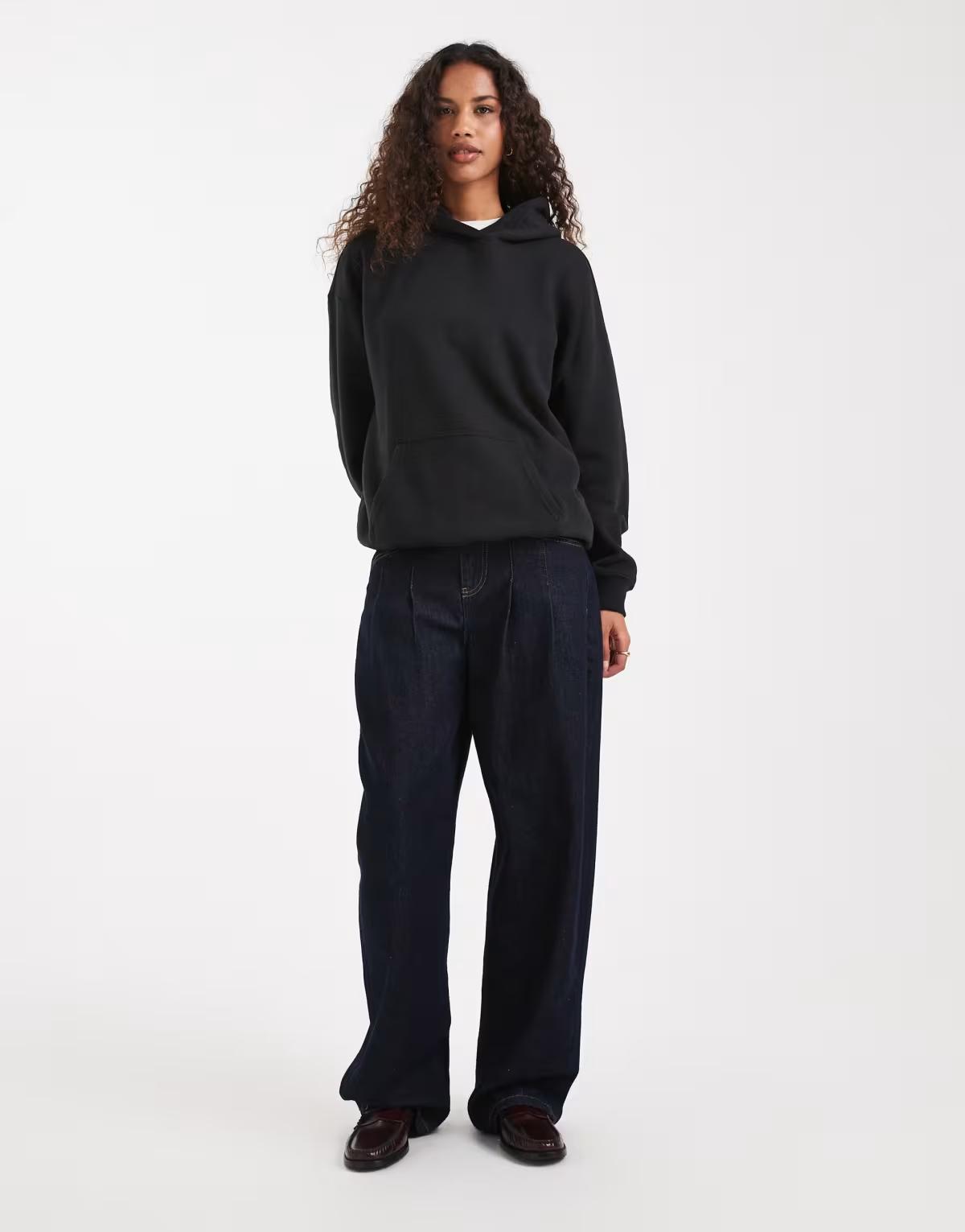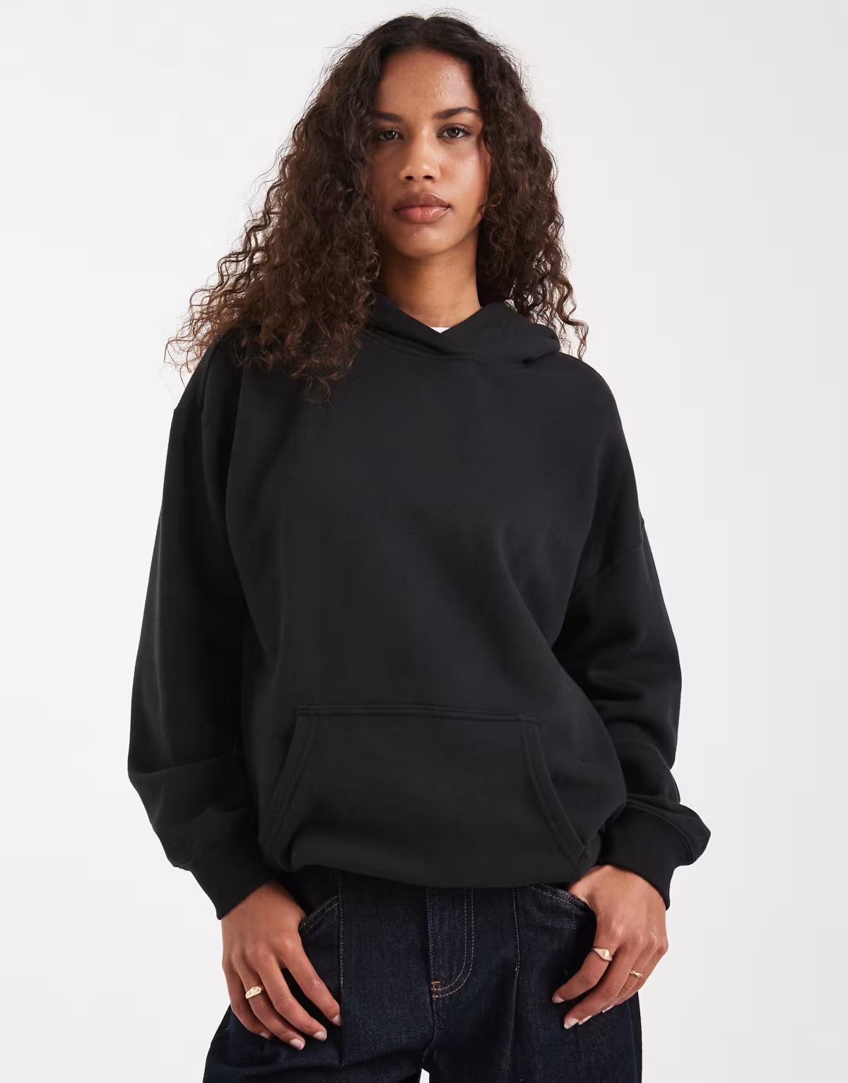 Hollister mini logo boyfriend hoodie in black