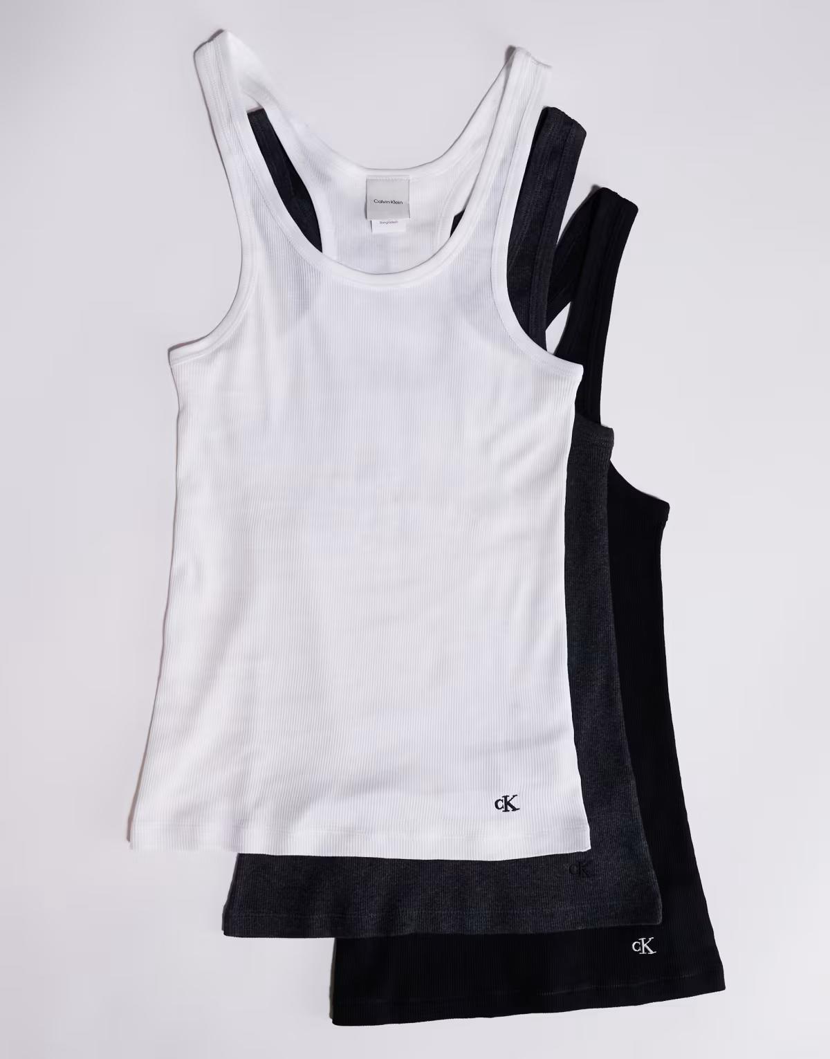 Calvin Klein scoop neck 3 pack tanks in black/white/grey