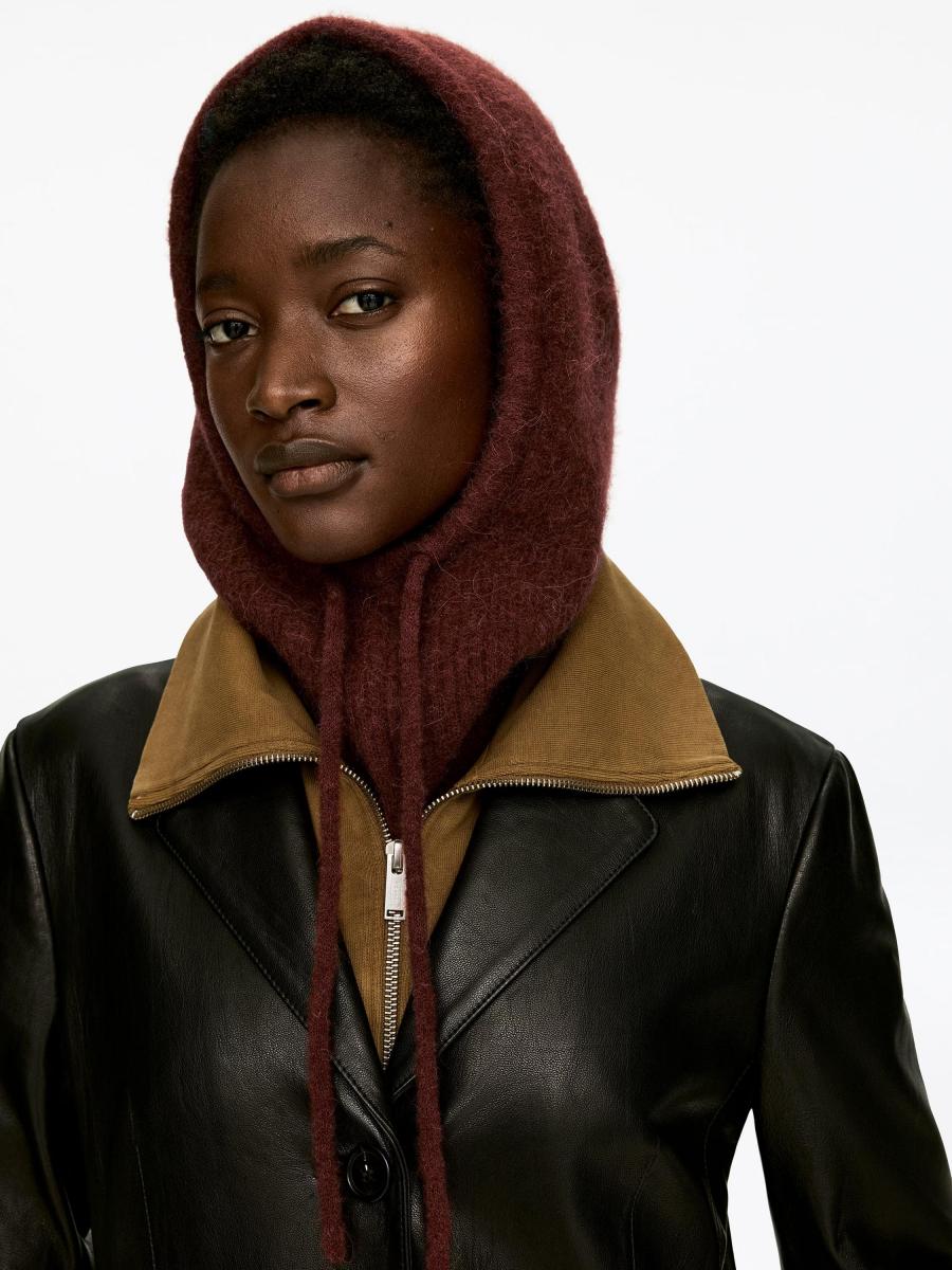 Soft drawstring hood with a hairy texture knitted from an alpaca and wool blend. The style contains 31% RWS wool (TE-00047206). Products certified to the Responsible Wool Standard (RWS) contain wool fiber from farms independently certified to animal welfare and land management requirements.ARKET/