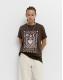 Golden bloom graphic and text print on front