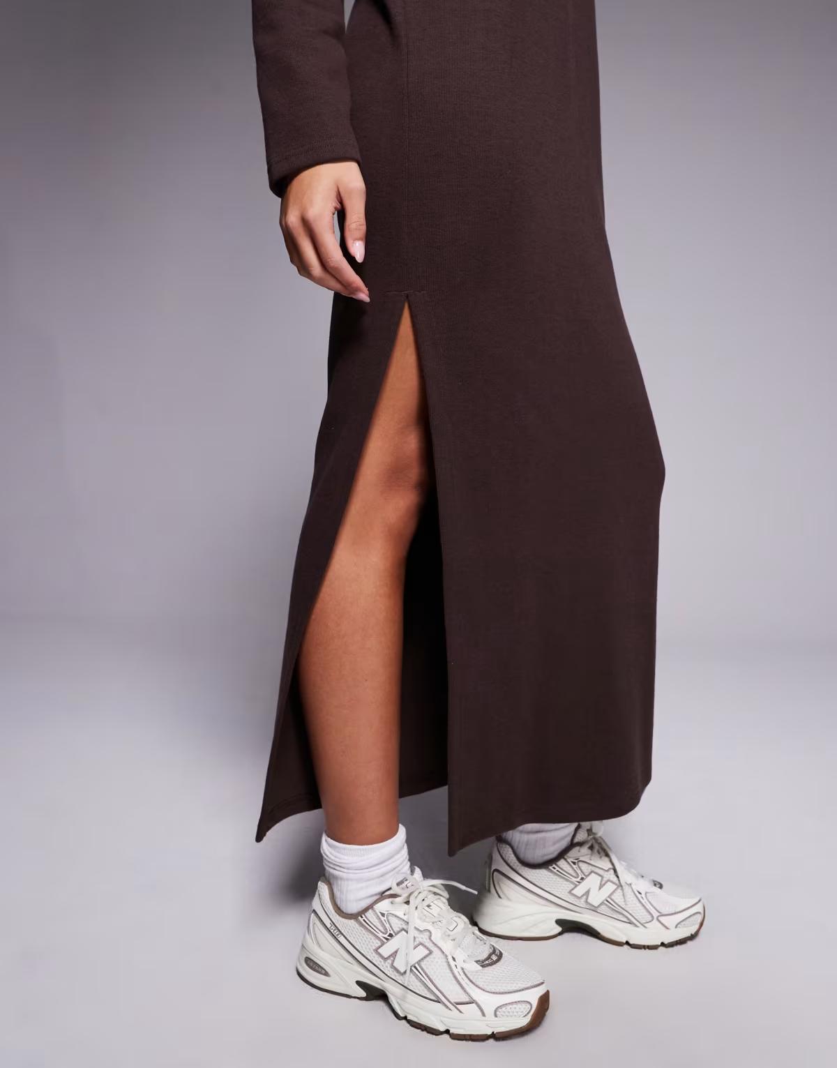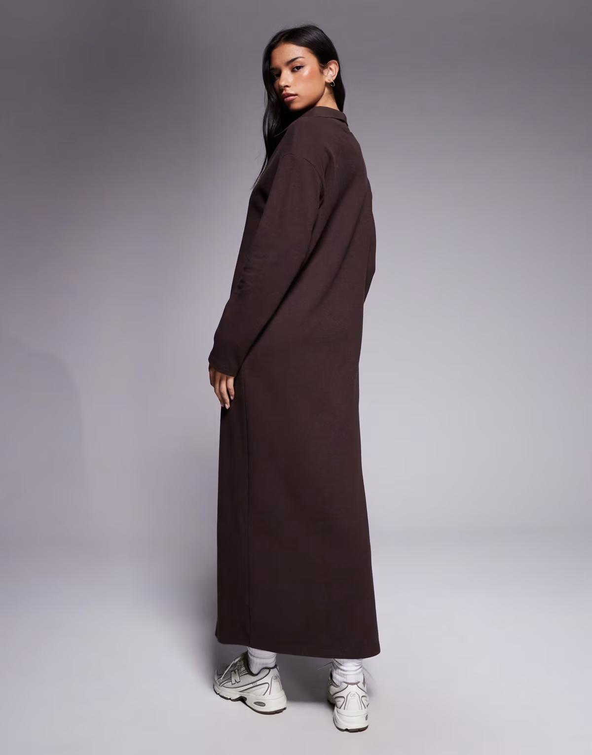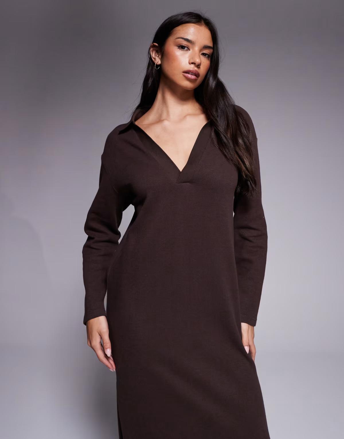 ASOS DESIGN supersoft slouchy polo midi dress in brown