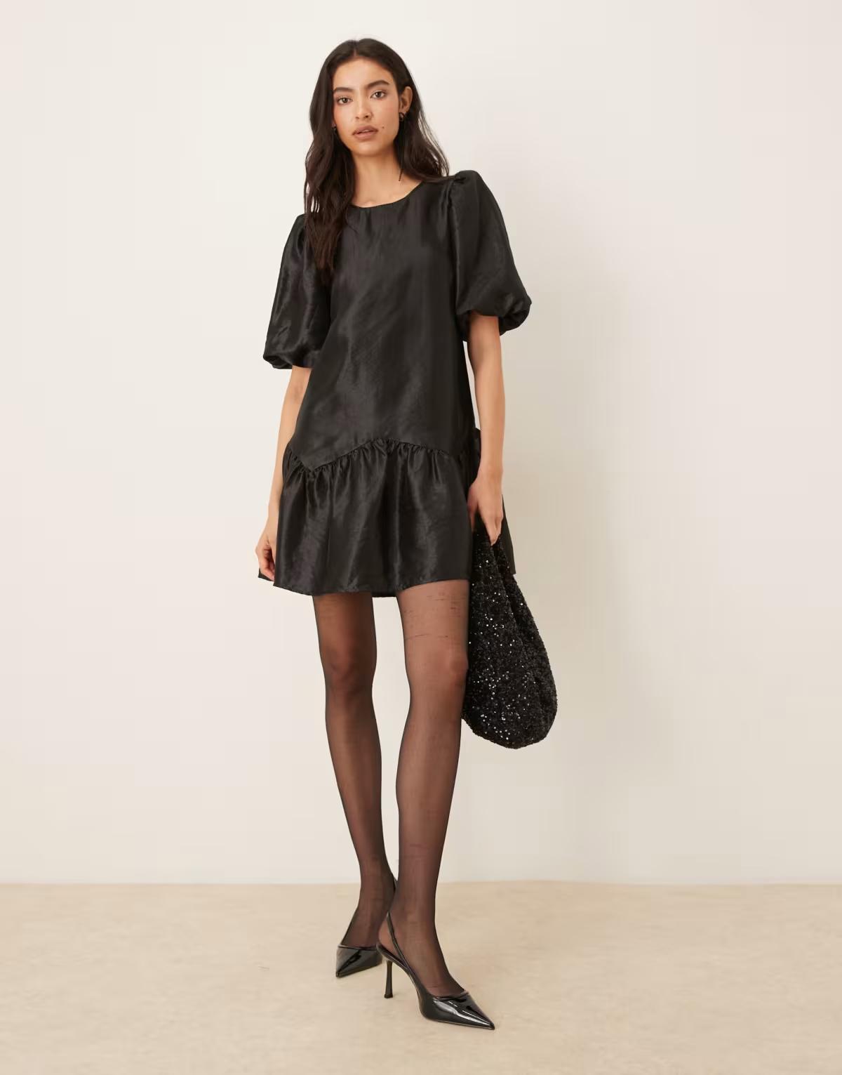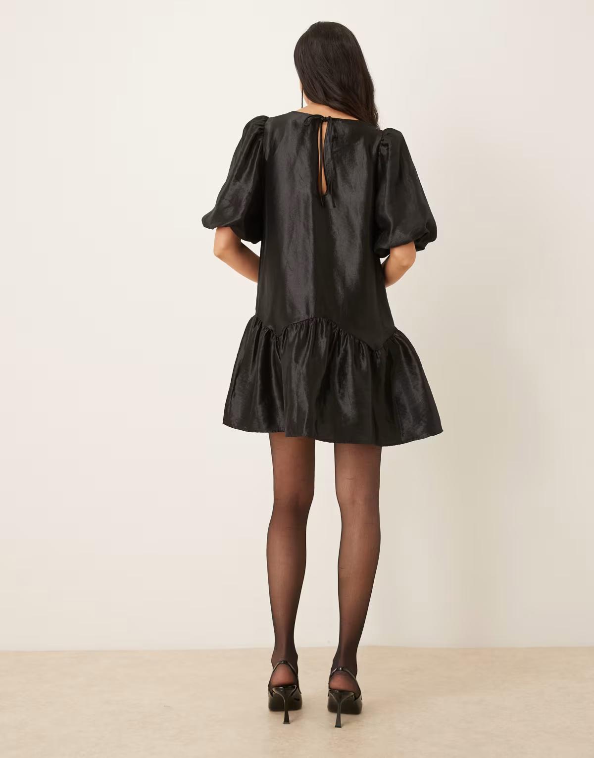 Gina Tricot short balloon volume sleeve peplum mini dress in black