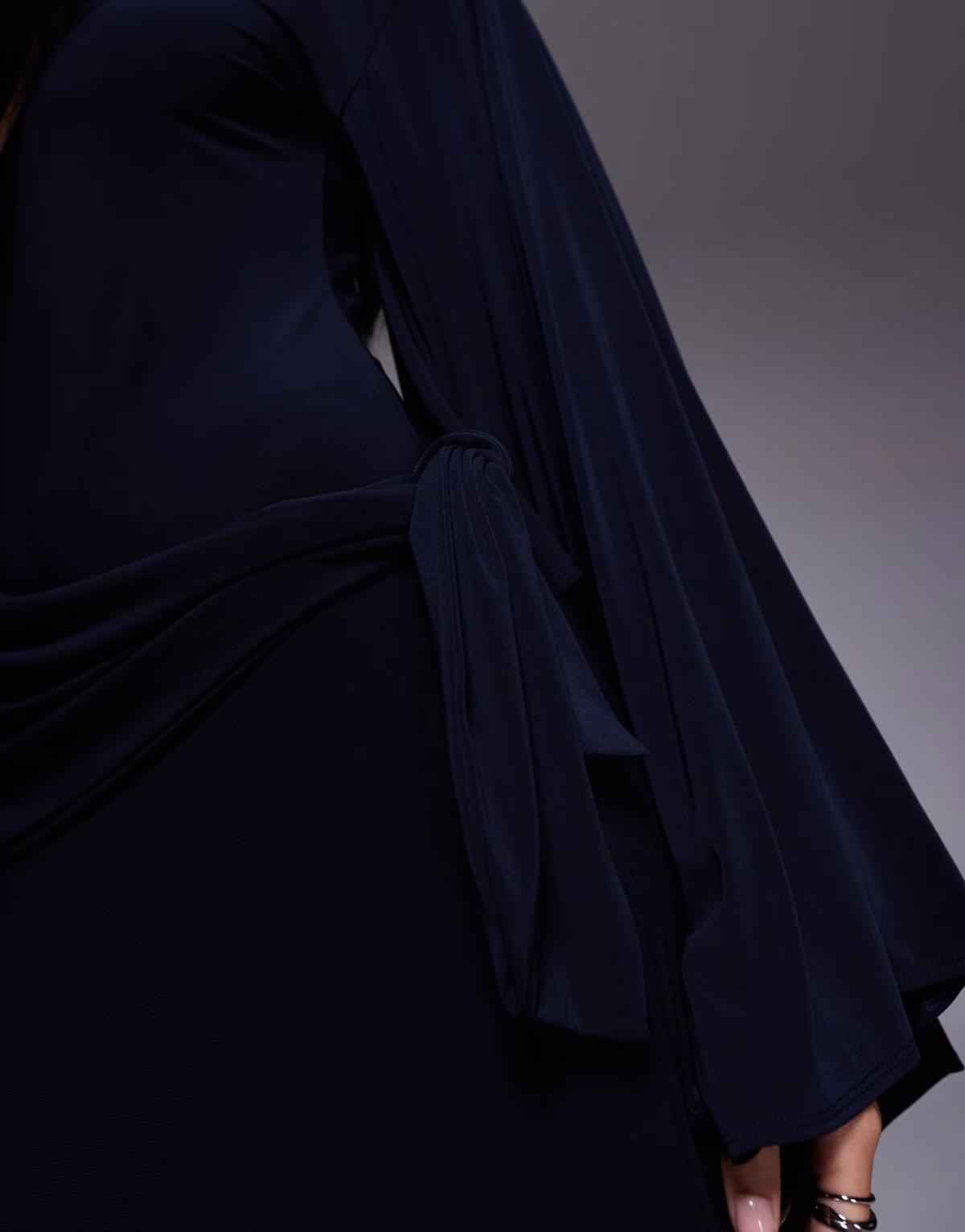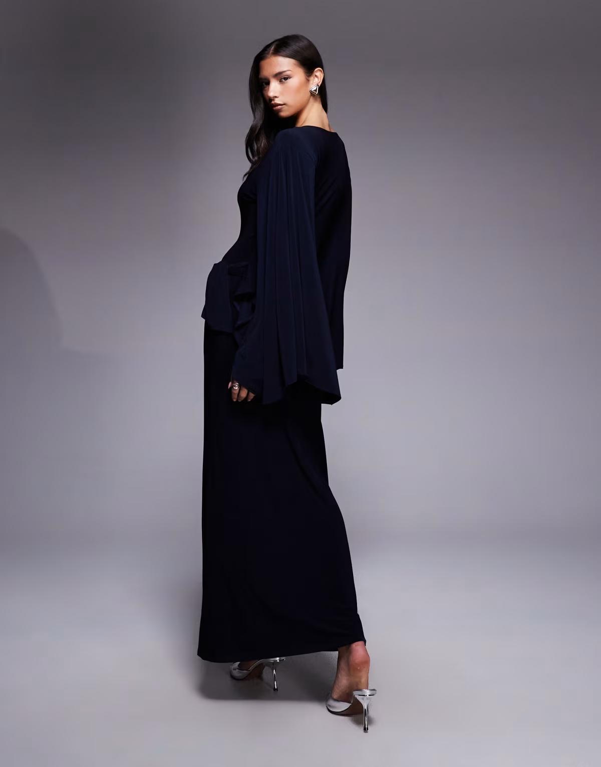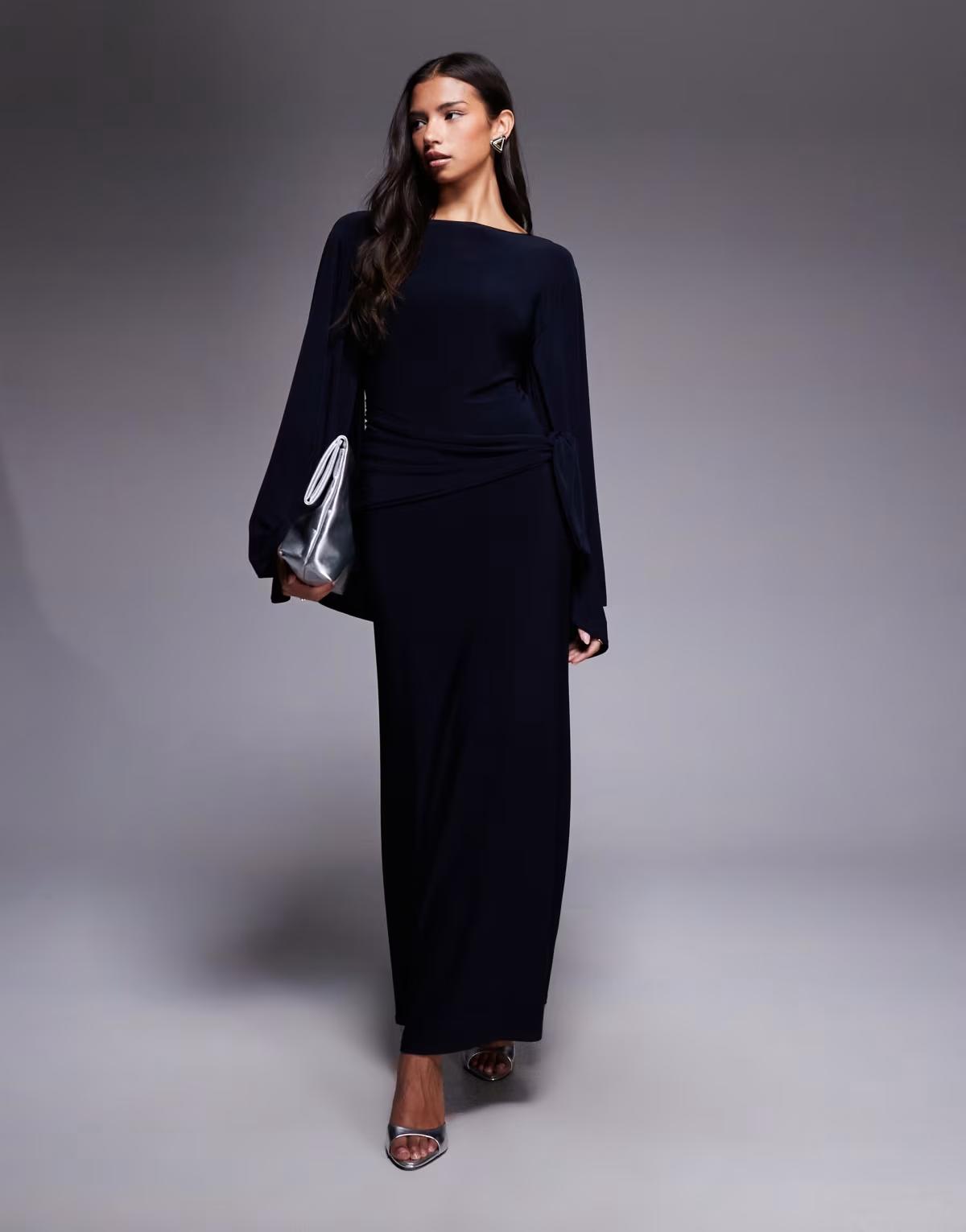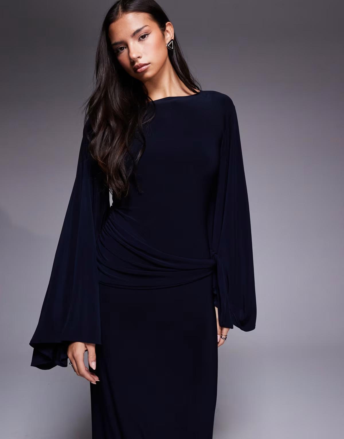 ASOS DESIGN exaggerated batwing cinched waist maxi dress in navy