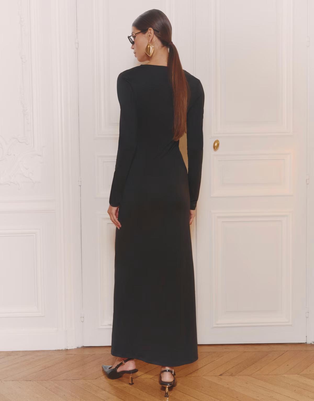 4th & Reckless slinky long sleeve gold hardware detail cut out maxi dress in black