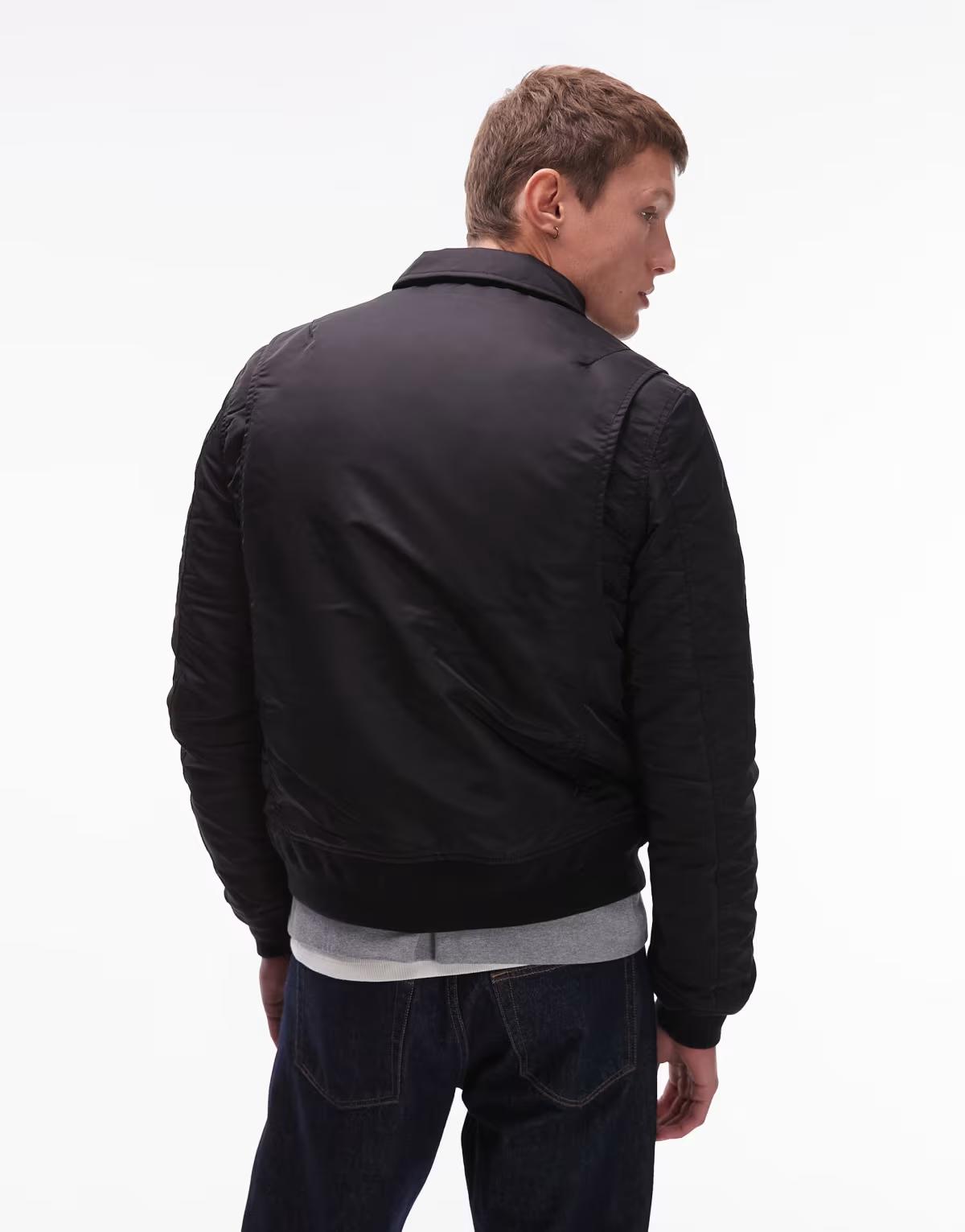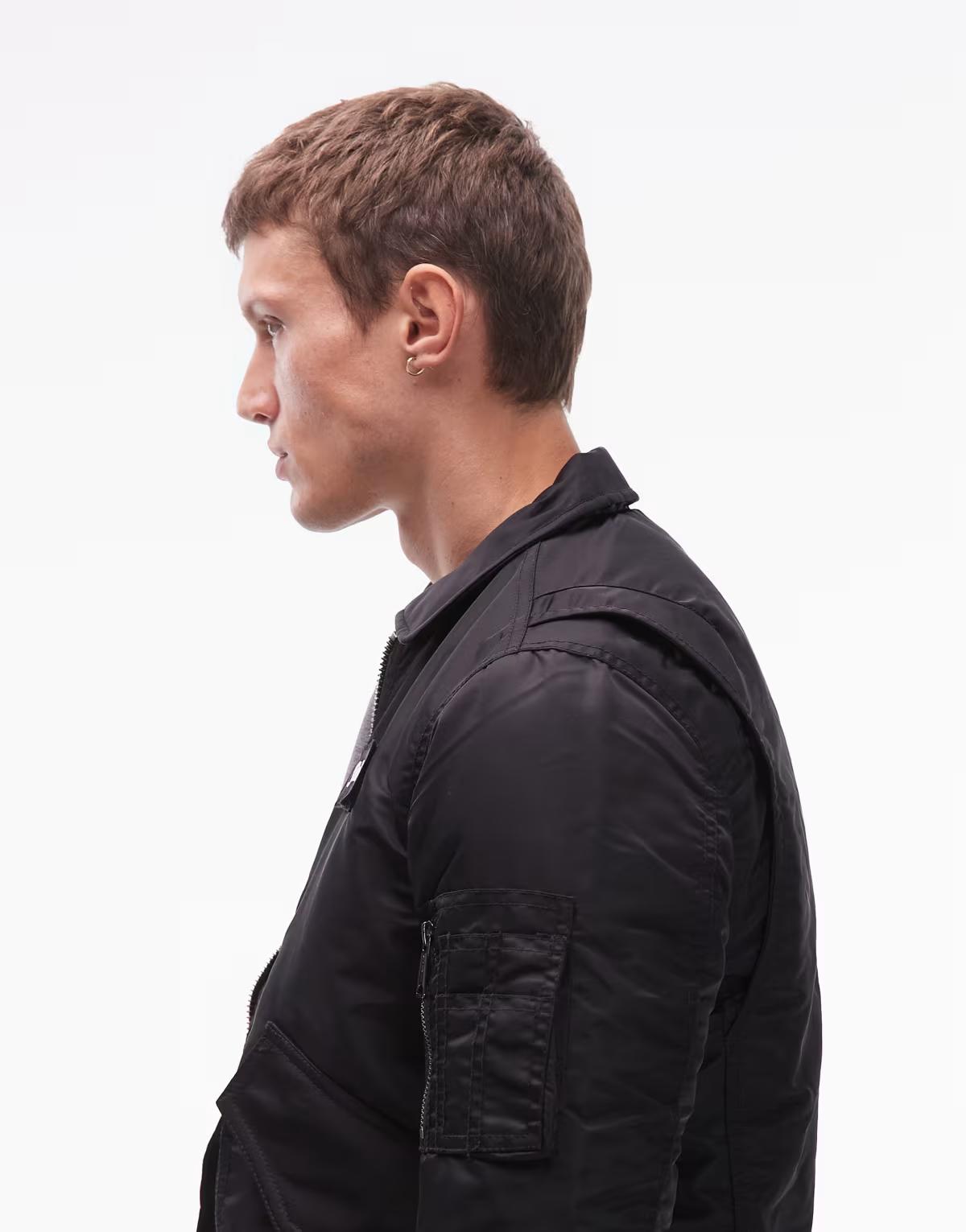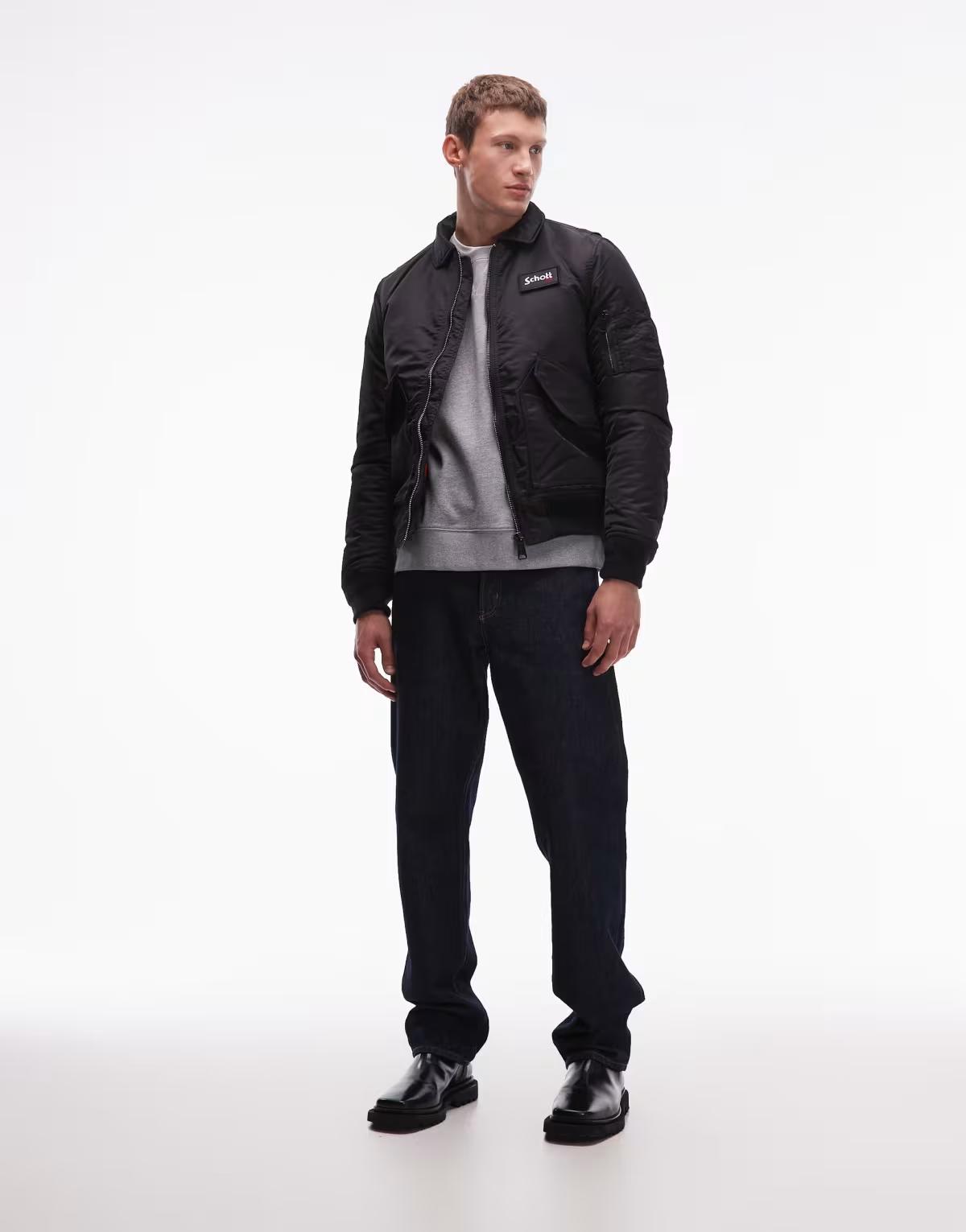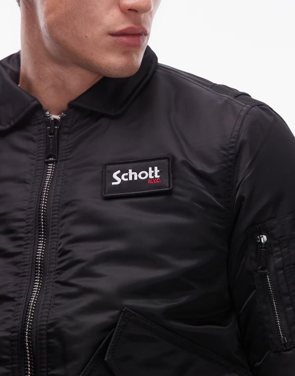 Schott logo patch zip pocket detail cropped padded jacket in black