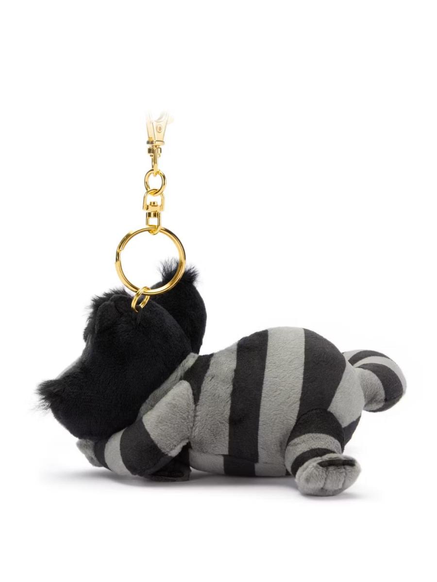 Feeling curiouser and curiouser? This shadowy Cheshire Cat keyring is all grin and giggles, with a moody makeover in black and grey stripes that’s perfect for Wonderland wanderers with a mischievous streak. With a gold-toned clasp and a classic pose, he’s ready to vanish into your bag - or reappear when you least expect it!