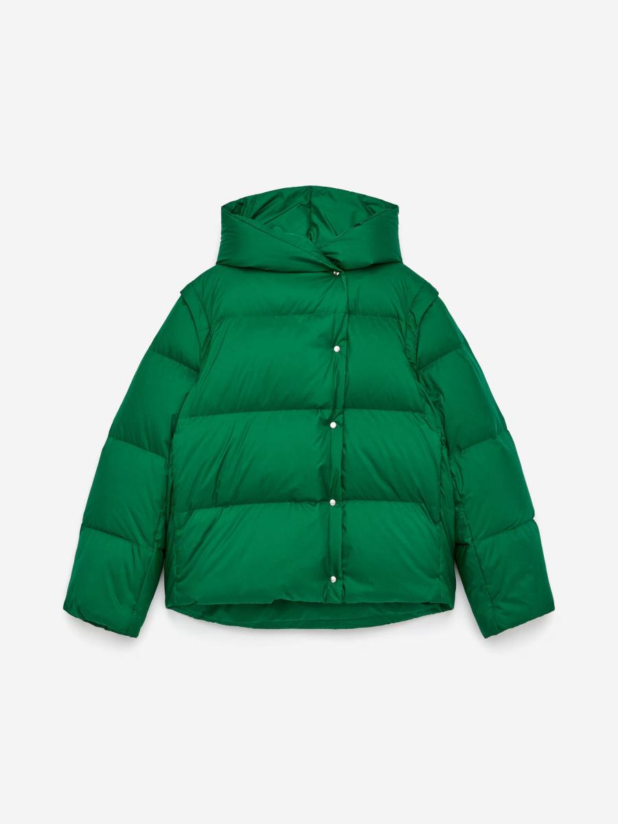Padded puffer jacket with a shawl collar and hood, featuring press-stud fastenings and zip pockets. Detailed with a zip pocket on one sleeve and elasticated hem. The sleeves are detachable.ARKET/Women's clothes/Women's coats and jackets/Women's jackets