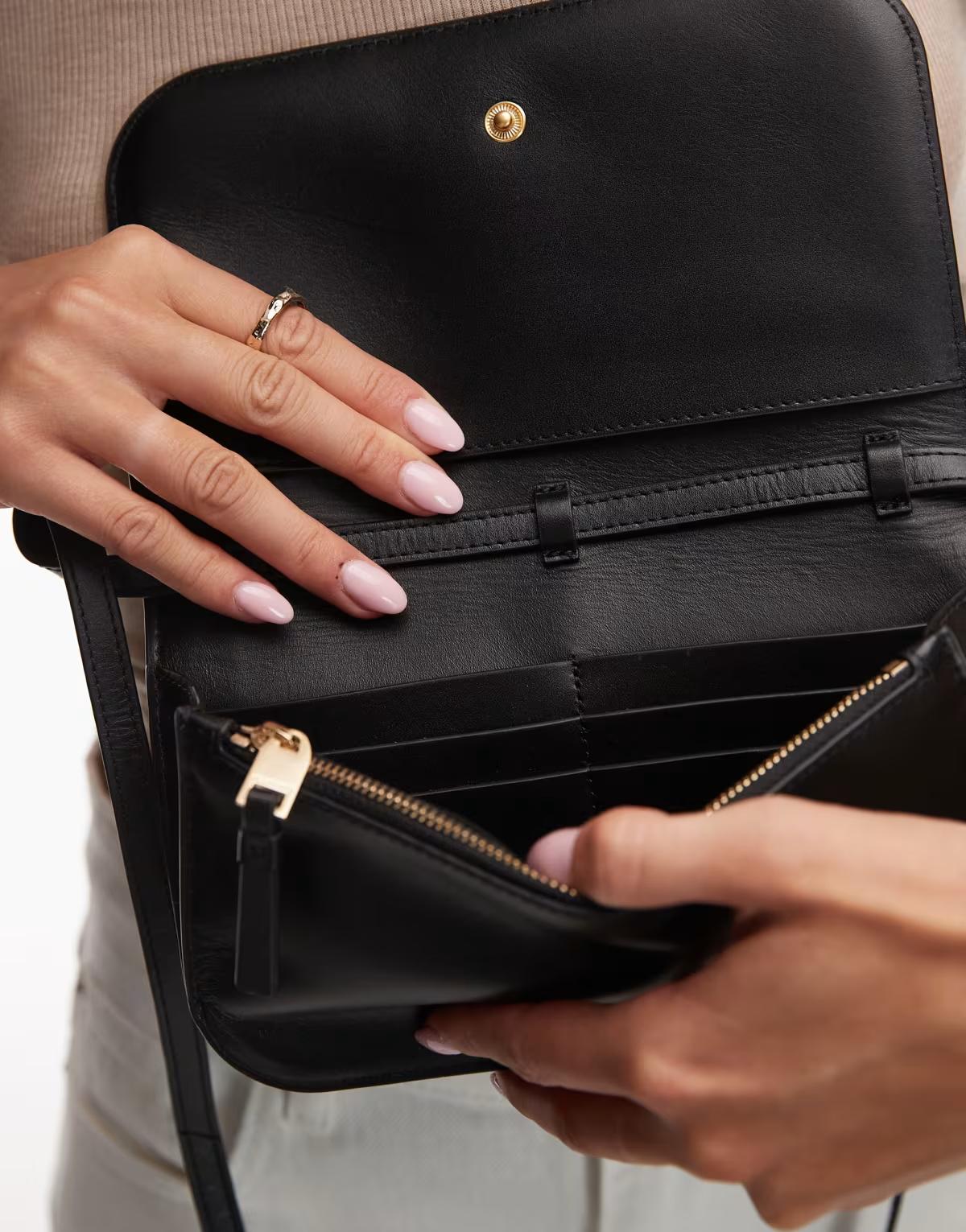 Allsaints Maeve wallet lanyard in black