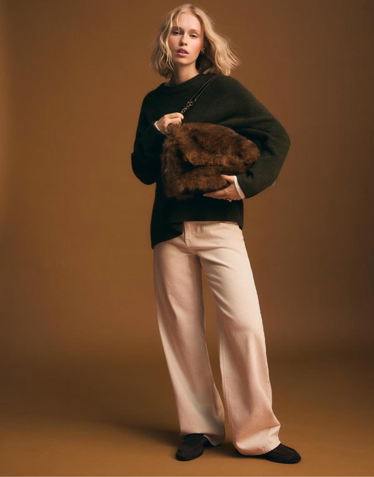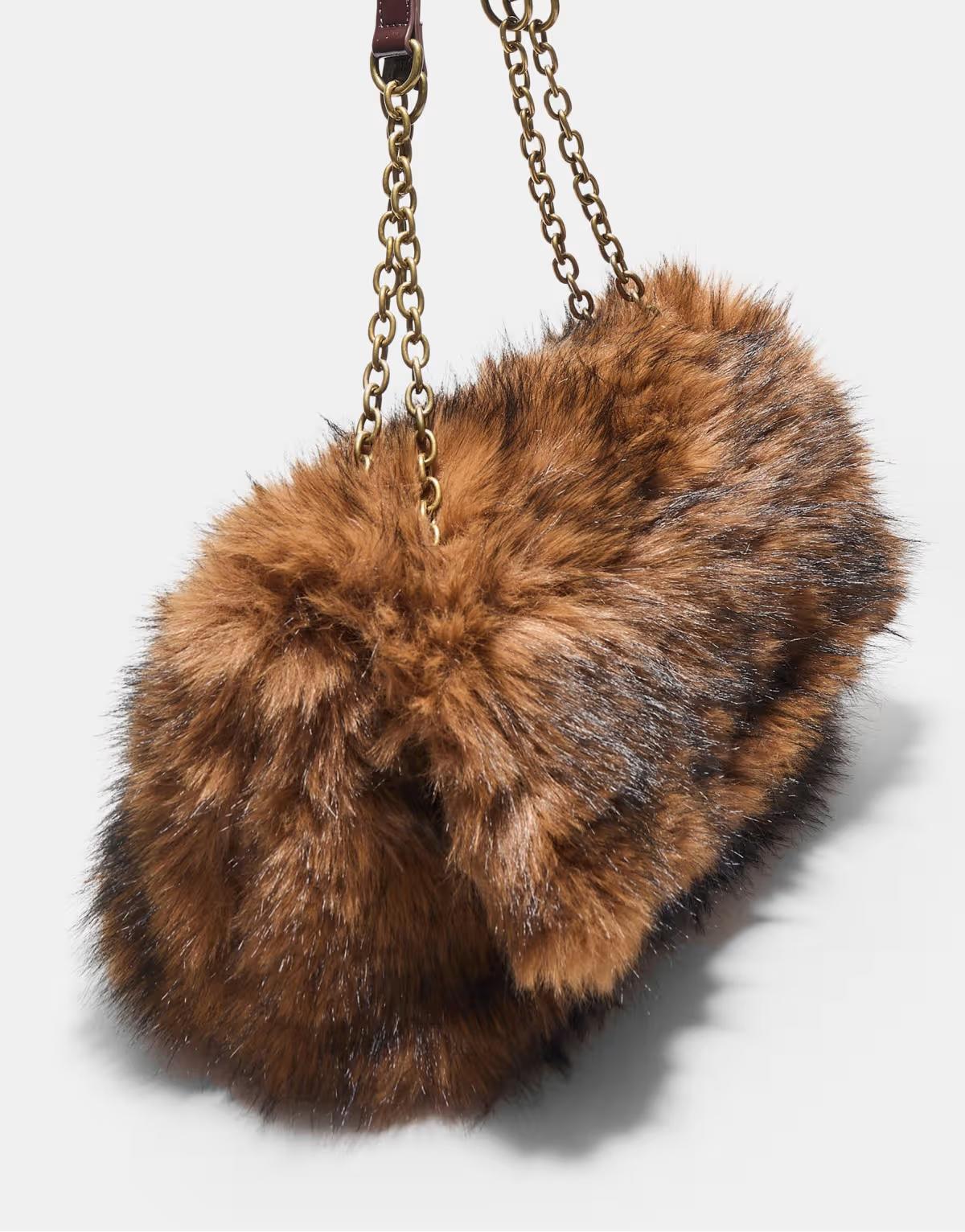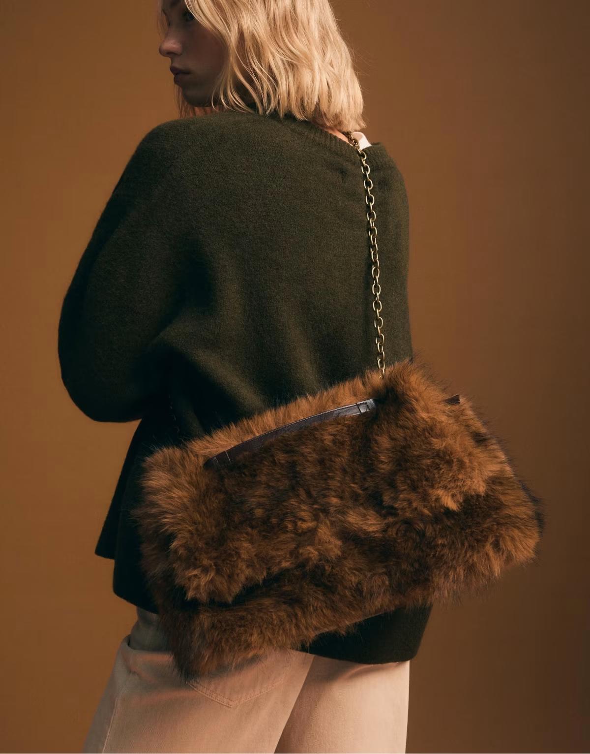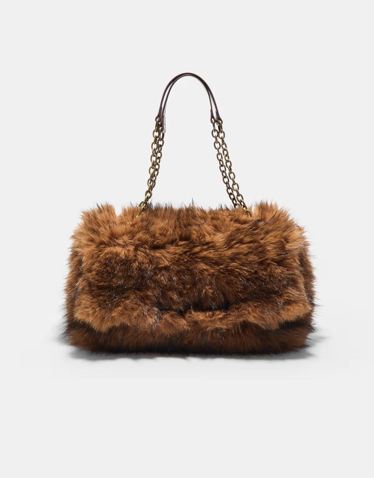 Stradivarius Rectangular faux fur crossbody bag in brown