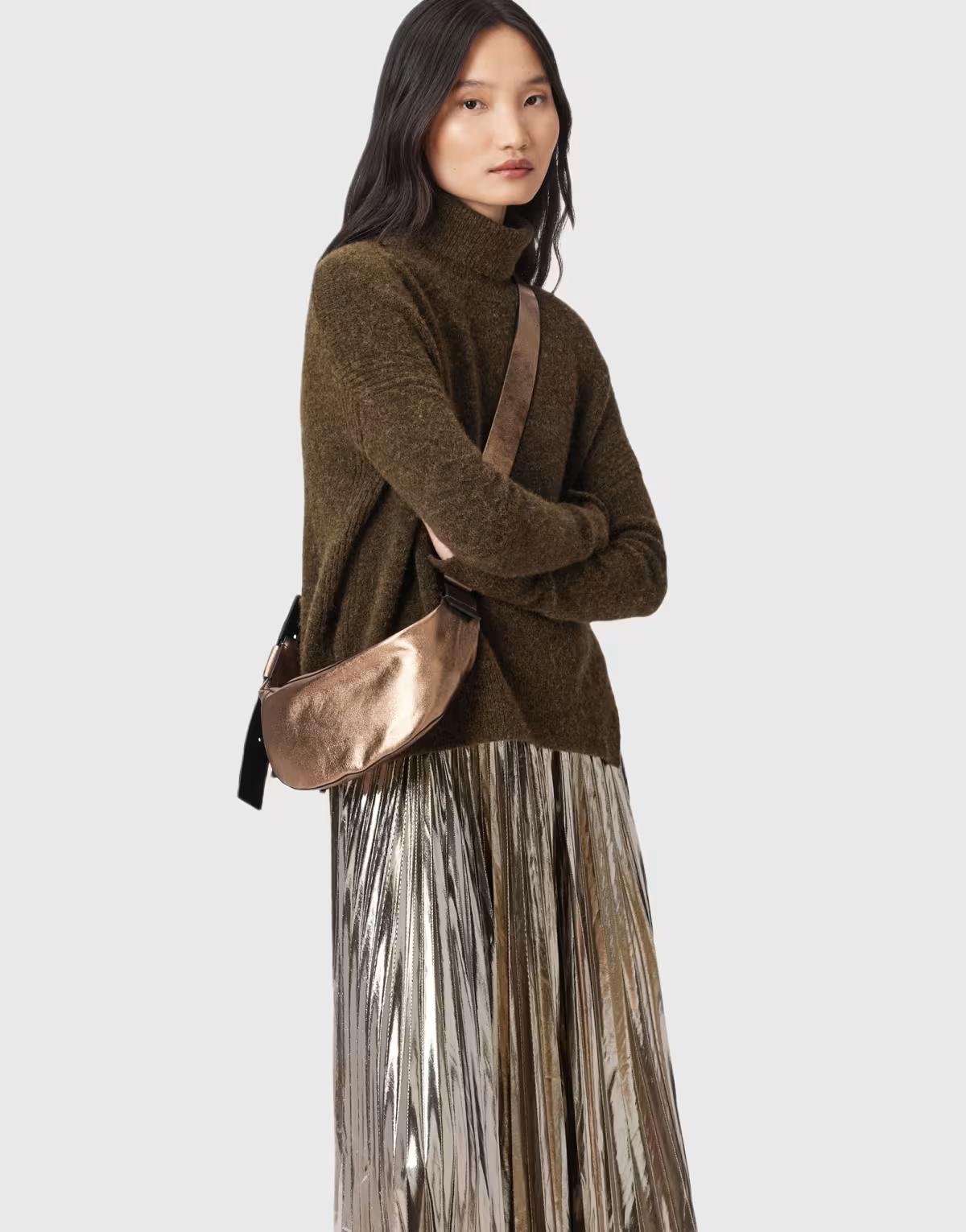 BrandEast London born and bred, AllSaints turned heads in the mid-90s with its investment leather jackets. Today, worn-in denim, draped cuts and classic jersey pieces reflect the laid-back attitude at the heart of the brand.Look After MeWipe clean onlyAbout MeMetallic finish