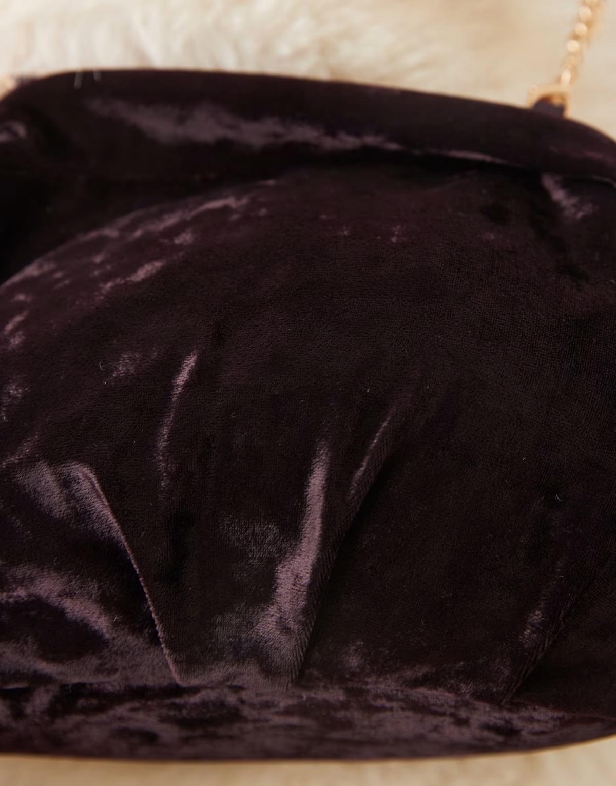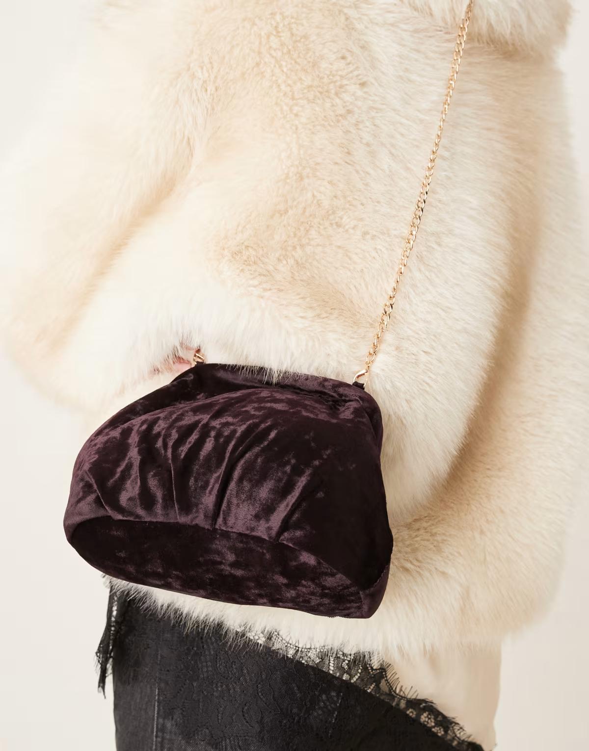 ASOS DESIGN crushed velvet frame clutch bag with detachable crossbody strap in plum