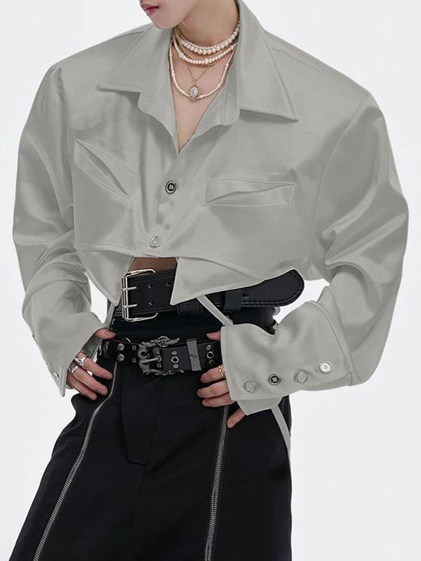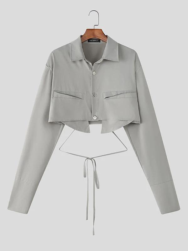 Men's Deconstructed Cropped Long Sleeve Shirt SKUL37872