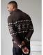 Threadbare Brown Fair isle Pattern Shawl Neck Knitted Cardigan