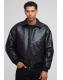 Oversized Creased PU Collared Bomber Jacket