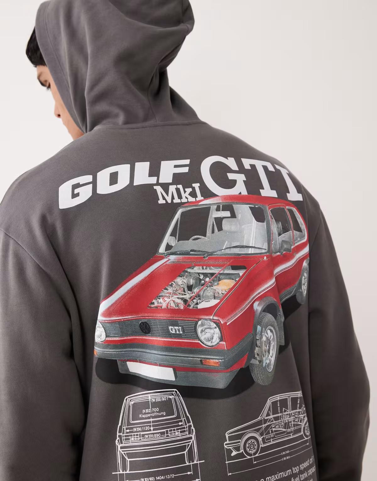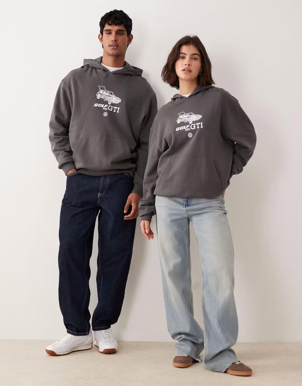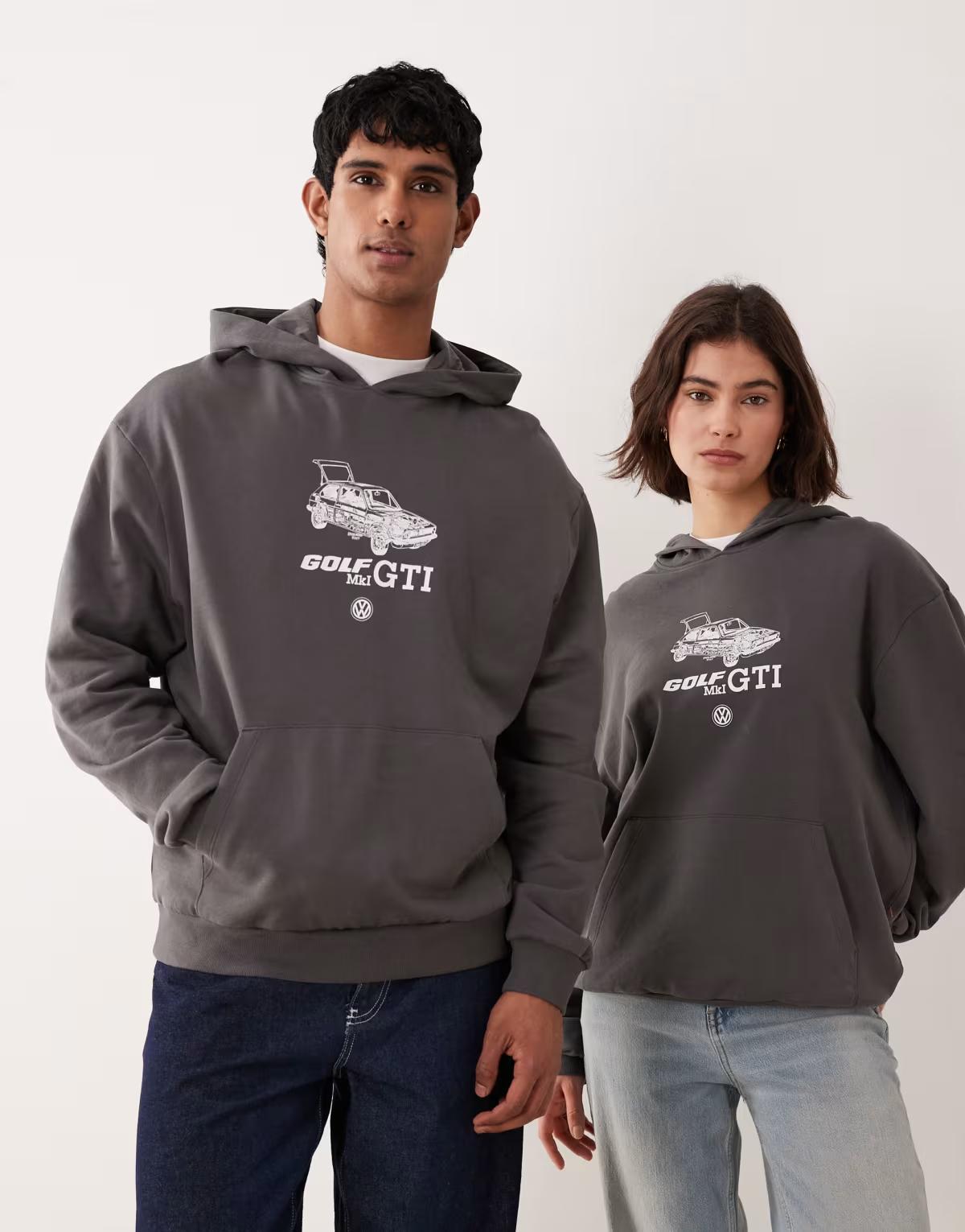 ASOS DESIGN unisex relaxed hoodie with Volkswagen print in grey