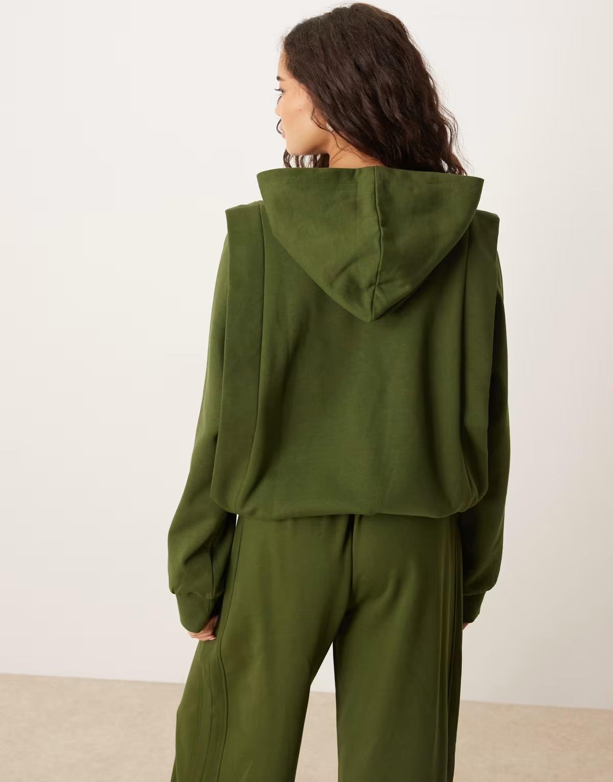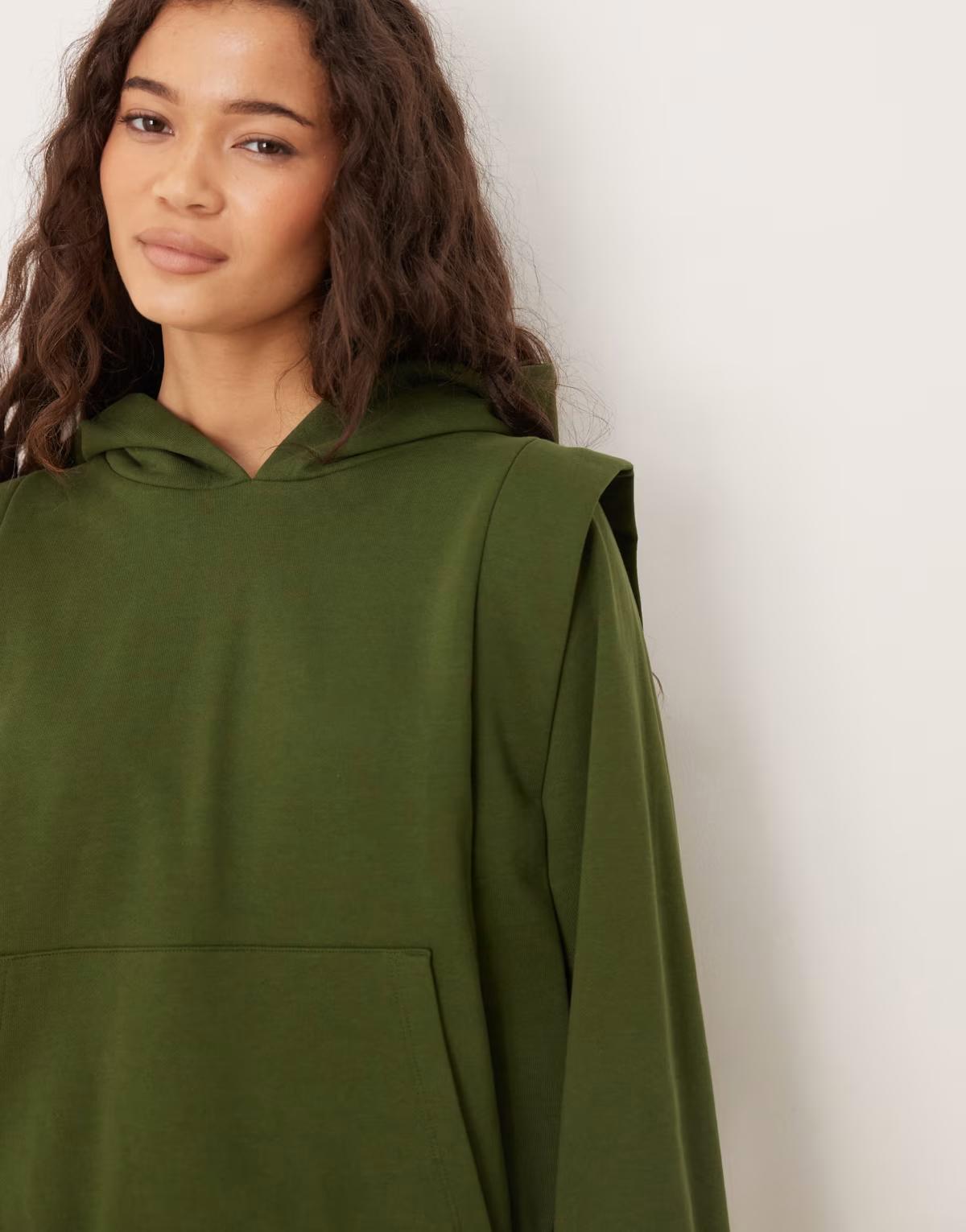 This product, ASOS DESIGN Circular Design Collection hoodie with seam detail in dark olive, meets ASOS’ Silver Standard