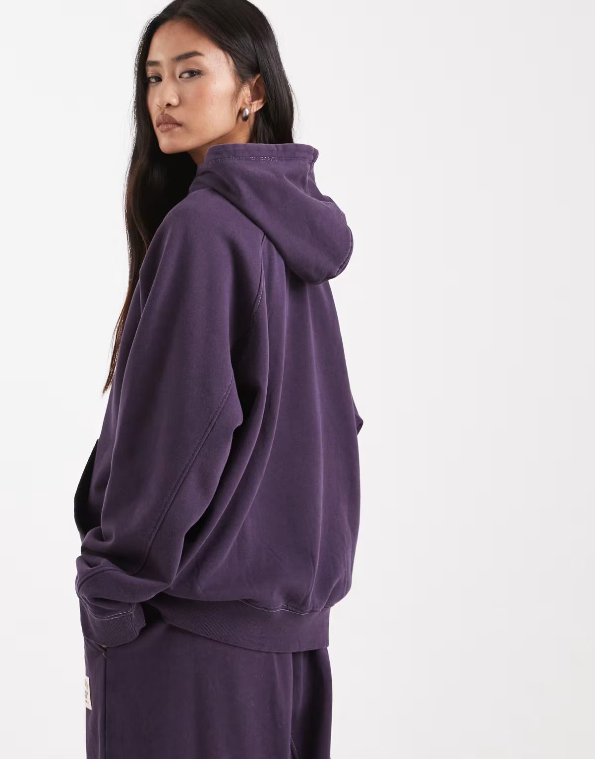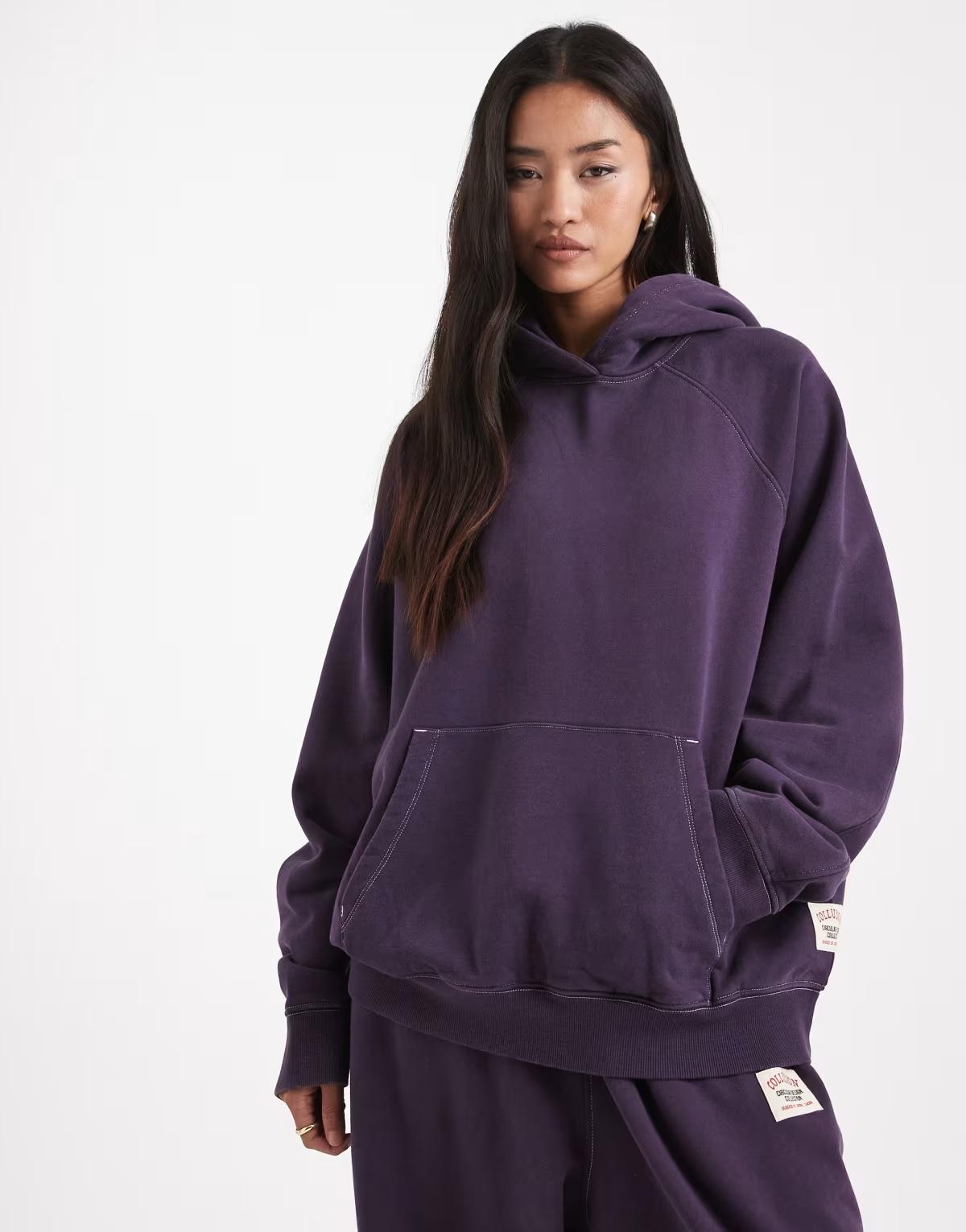 This product, COLLUSION Circular Design Collection heavyweight boxy hoodie washed aubergine, meets ASOS’ Silver Standard