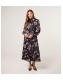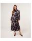 Blue Vanilla Black Floral Chiffon Long Sleeve Midi Dress