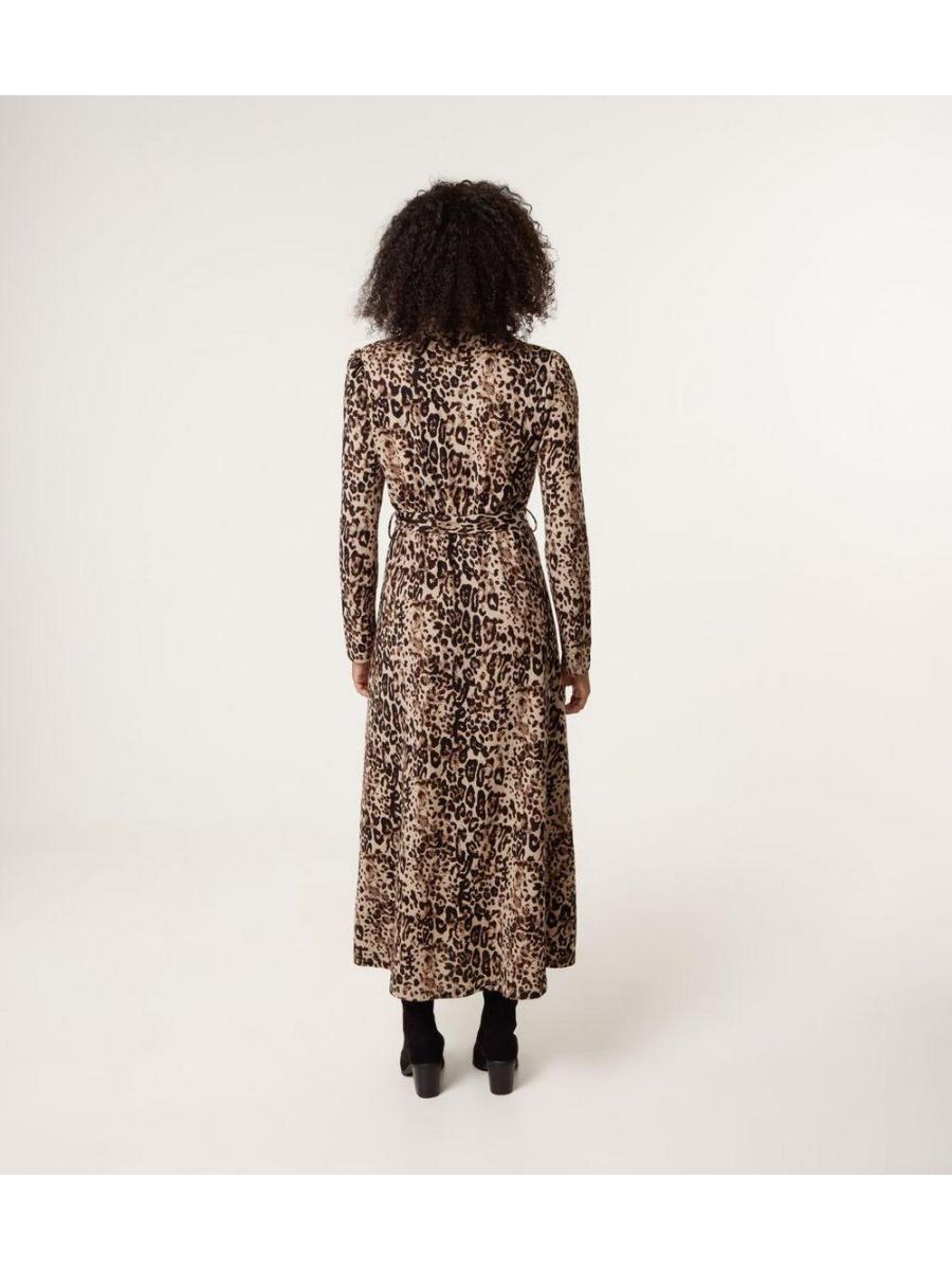 Blue Vanilla Brown Animal Print Midi Shirt Dress