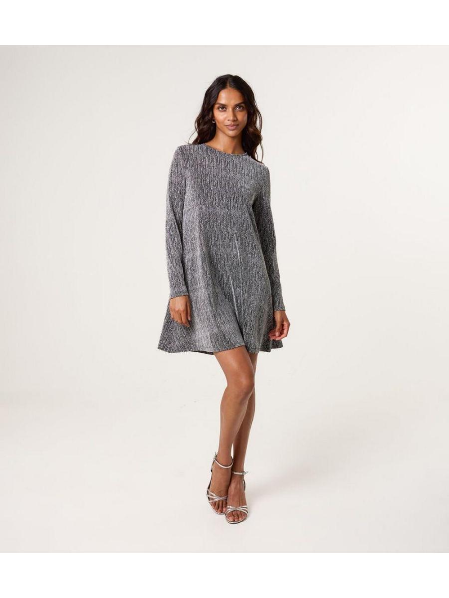 Blue Vanilla Silver Long Sleeve Mini Swing Dress