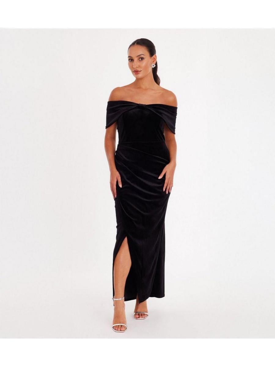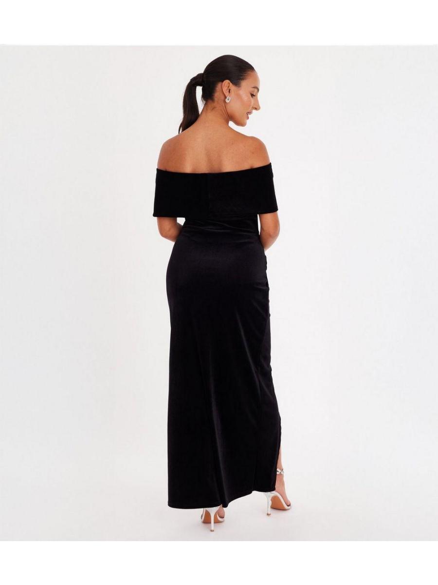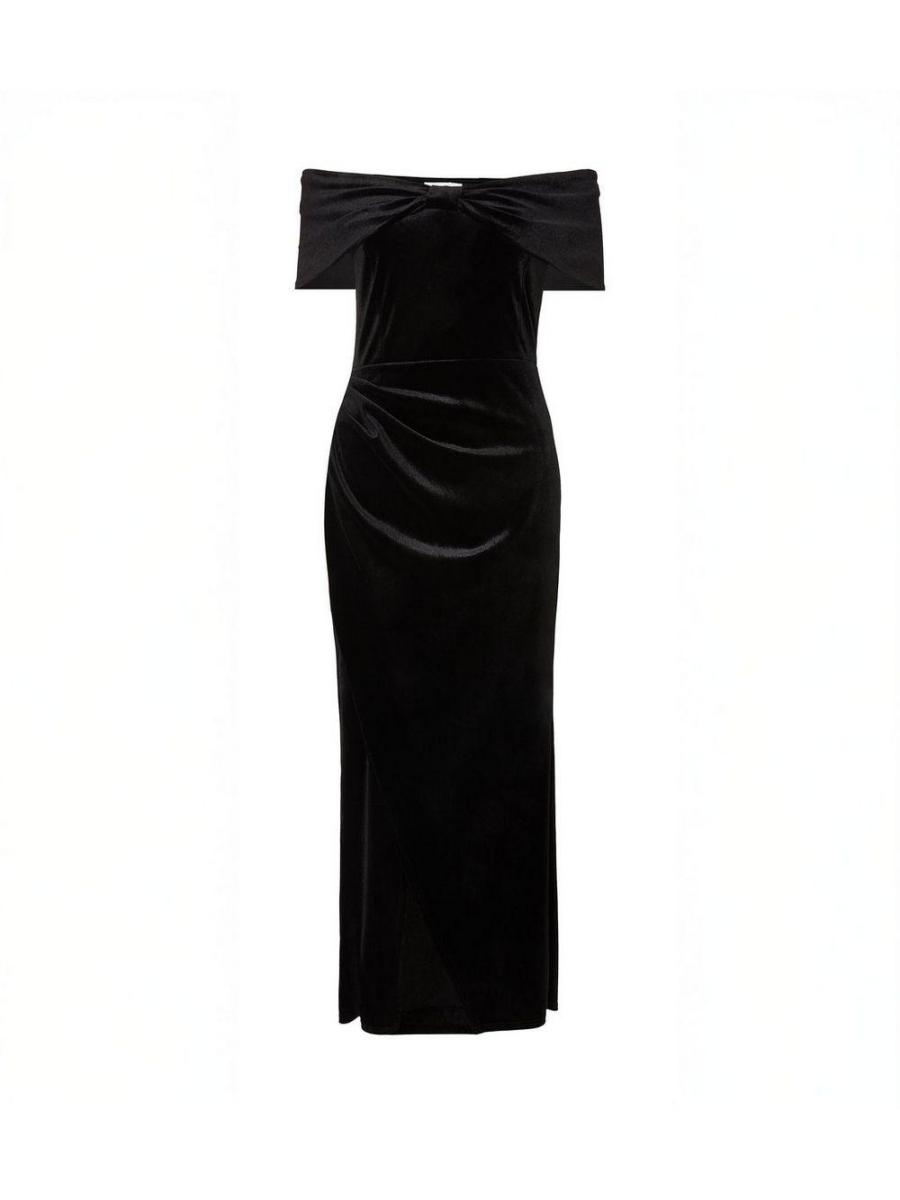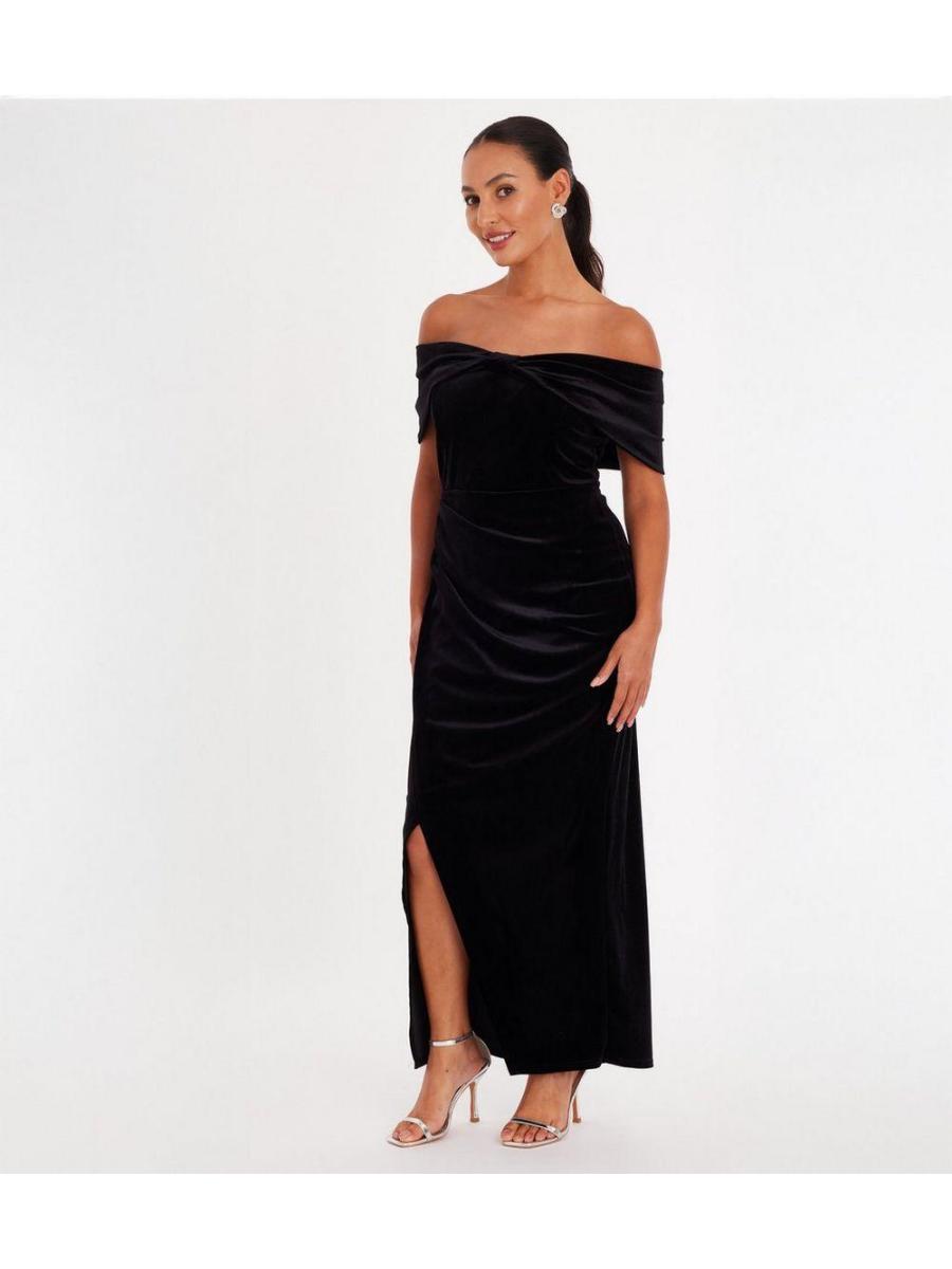 QUIZ Petite Black Velvet Bardot Wrap Dress