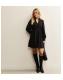 Petite Black Textured Floral Button Up Mini Dress