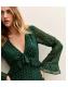 Dark Green Foil Spot Ruffle Trim Midi Dress