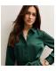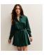 Petite Dark Green Satin Belted Mini Shirt Dress