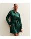 Dark Green Satin Mini Shirt Dress