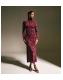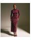 Burgundy Velvet Floral Devore Long Sleeve Midi Dress