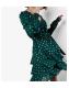 Apricot Dark Green Foil Spot Layered Long Sleeve Dress