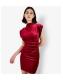 Apricot Red Velvet Cowl Neck Ruched Mini Dress