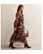 Petite Brown Floral Chiffon Ruffle Trim Midi Dress