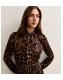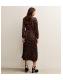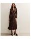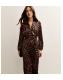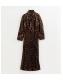 Dark Brown Animal Print Pleated Long Sleeve Midi Dress