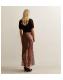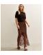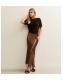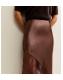 Petite Dark Brown Satin Lace Asymmetric Bias Midi Skirt