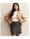 Petite Brown Check Belted Mini Skirt