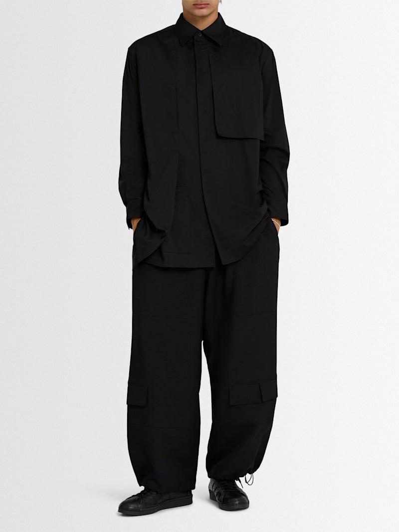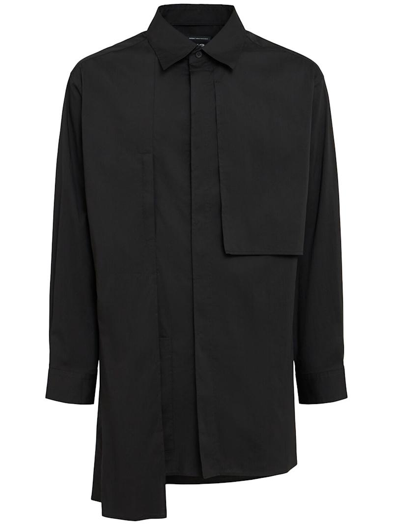 不对称混棉衬衫 - 黑色 - 男士 - Y-3 - 正面隐藏式纽扣开合.