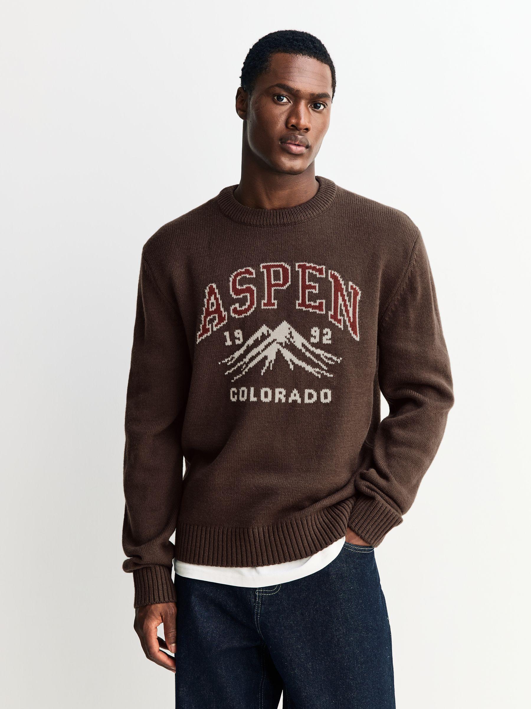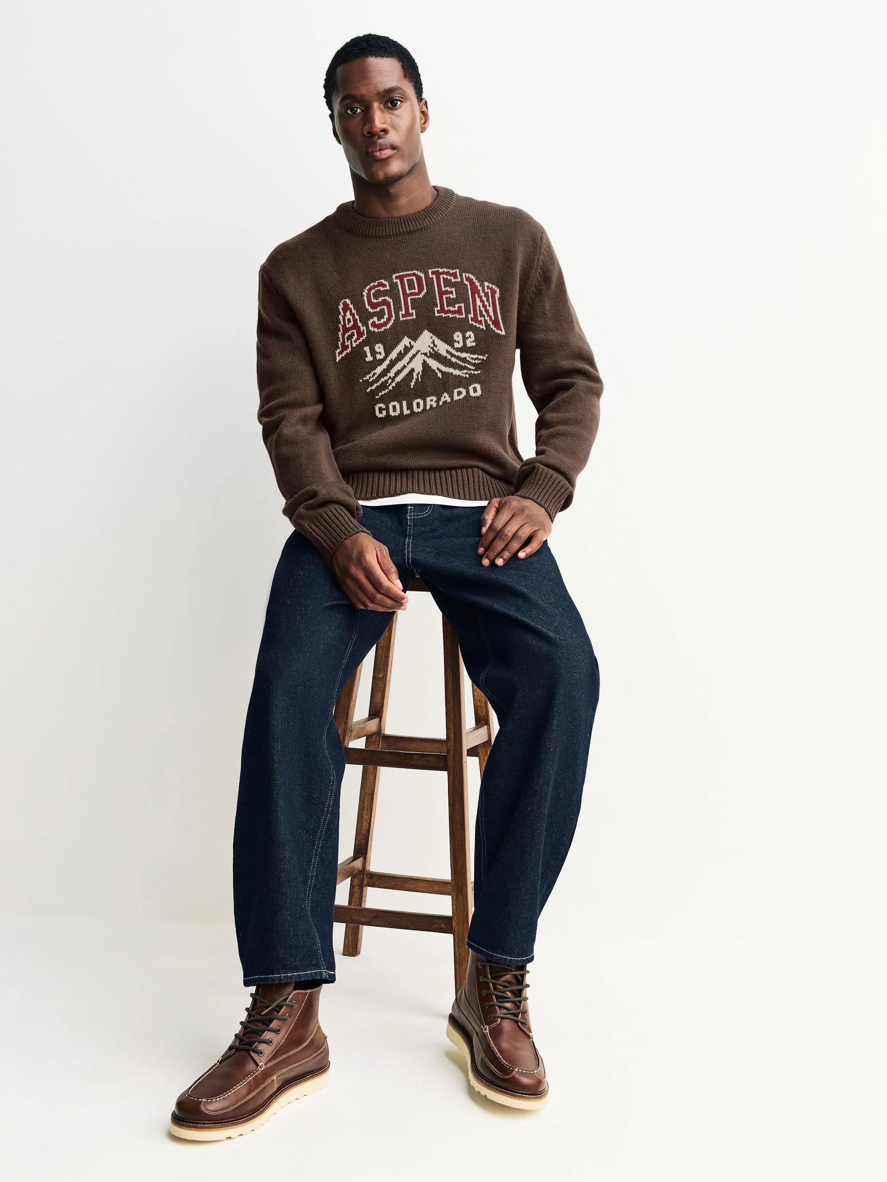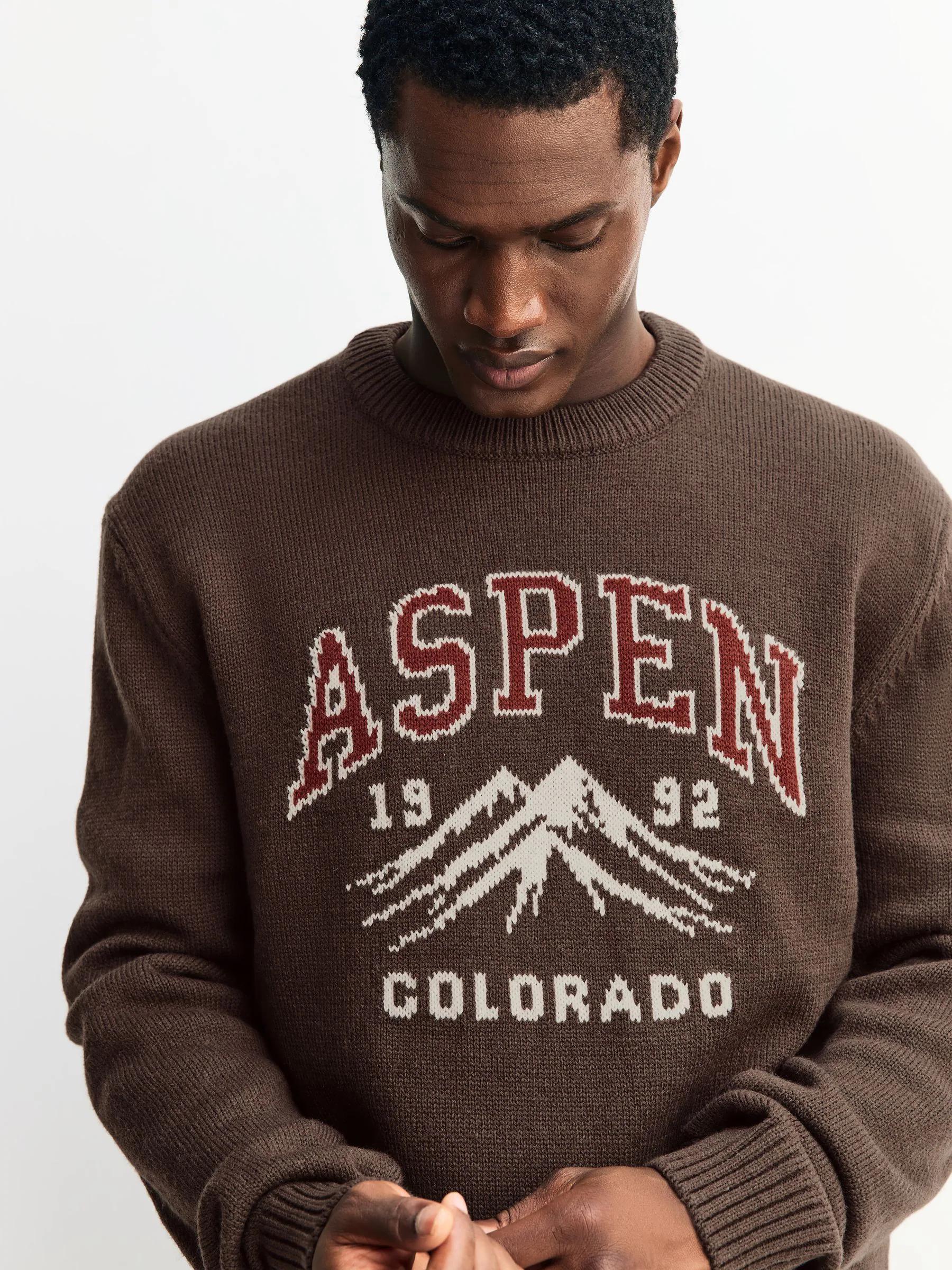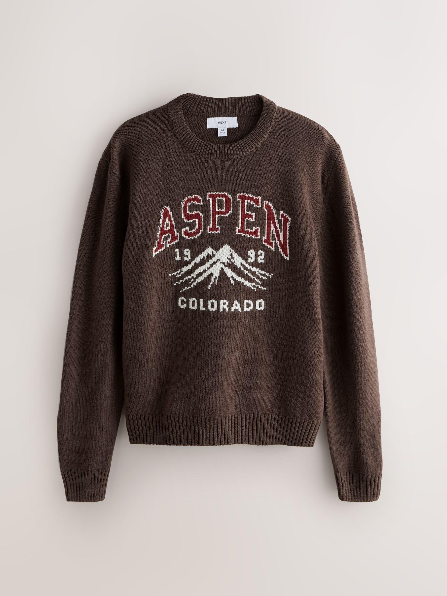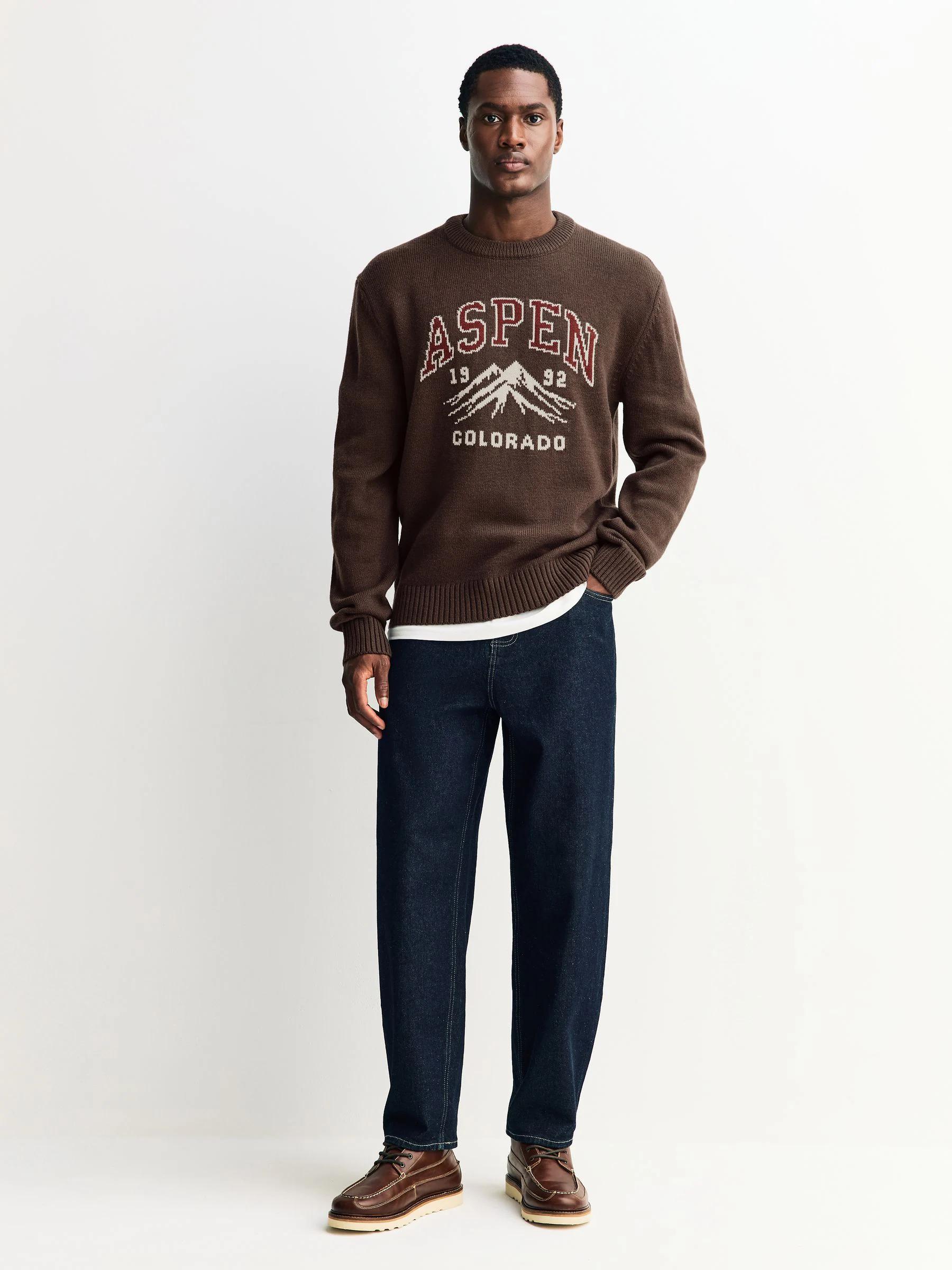 Brown Regular Fit Aspen Crew Neck Jumper with Wool