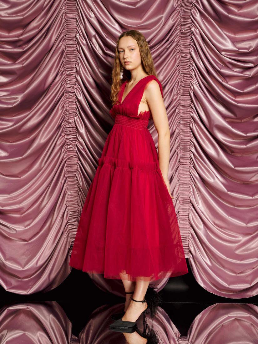 DREAM Rouge Tulle Midi Dress