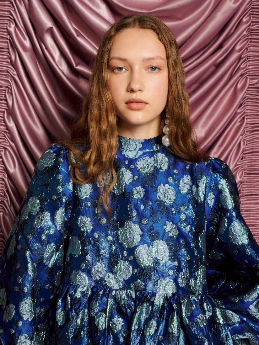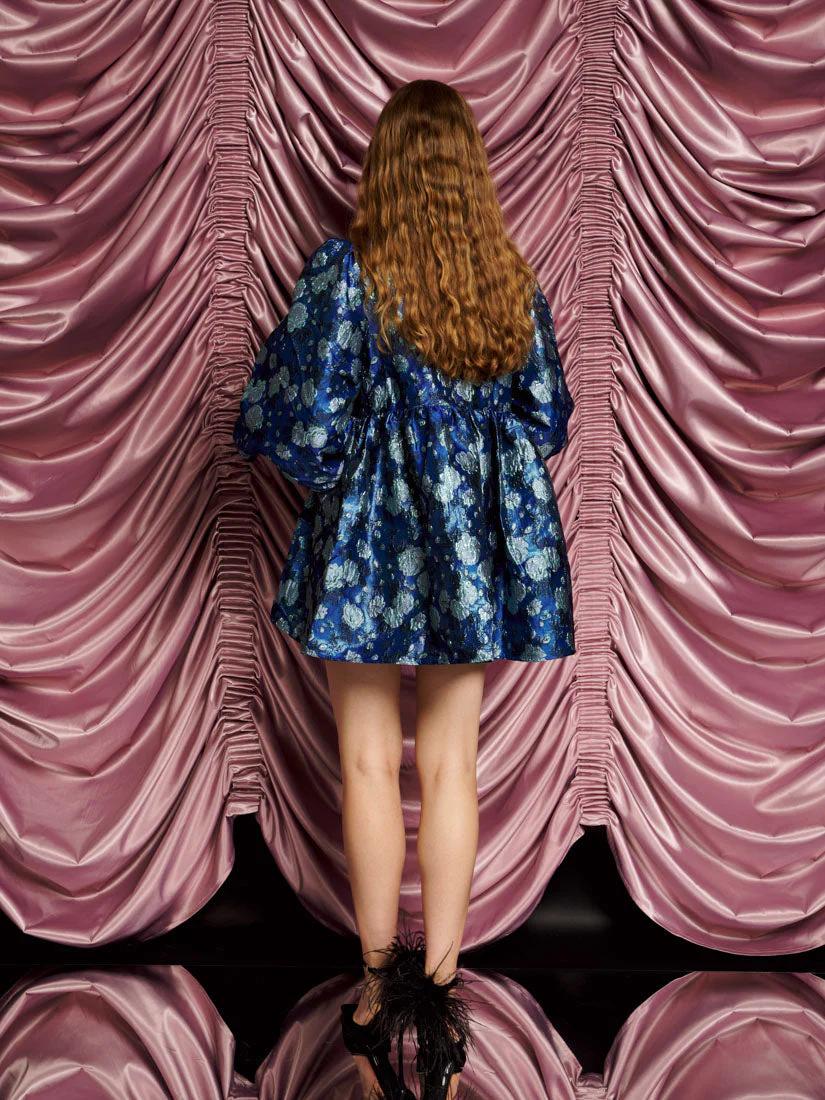 The show begins the moment you step in. Jacquard flowers bloom in the glow of admiration. The Spotlight Jacquard Mini Dress is built for the bold, where every pocket holds a little sparkle of magic.