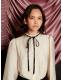 The Encore Blouse knows how to make an entrance, soft woven fabric finished with pearl buttons, satin ties, and delicate trims. The performance is all in the details. Finish the performance off with the Ripple Bow Embellished Trousers