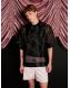 The Blaise Bows Polo Shirt transforms organza into a sheer canvas for satin bows. A playful twist on tailoring, it’s sheer showgirl magic. Pair with the Rowan Sequin Stripe Shorts to complete the magical spell.