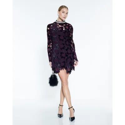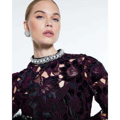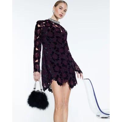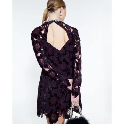 Purple Velvet Lace Trim Mini Dress