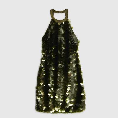 Green Halter Neck Sequin Mini Dress